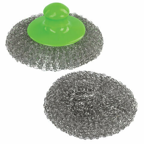 Металлическая губка отлично подходит для удаления сильных загрязнений. Пластиковая ручка в разы облегчает ее использование и повышает эффективность. Имеет увеличенный срок службы, не окисляется, не боится высоких температур. Металлическая губка для мытья посуды эффективно очищает сковородки и другие предметы для жарки. Преимуществом такой губки является ее долговечность.