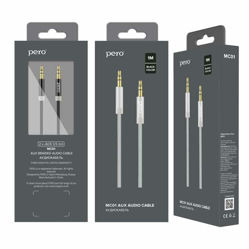 Аудио-кабель PERO MC-01 2x3.5 JACK 1м Black