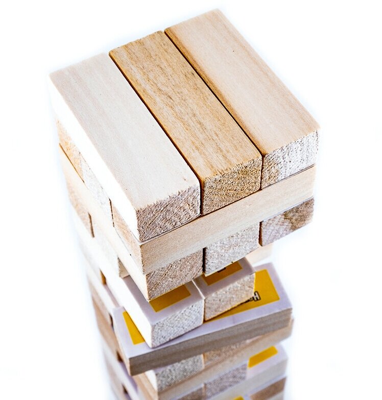 Дженга - это игра для азартных людей с логическим складом мышления, у которых не дрогнет рука в самый ответственный момент. В этой игре собирается башня из деревянных брусков. Они выкладываются горизонтально по три штуки в ряд, чередуясь в двух направлениях - ряд вдоль, ряд поперек. Затем игроки по очереди вынимают бруски из нижних рядов и укладывают их на верх башни, причем проделывать это нужно одной рукой. Задача участников - не разрушить Башню. Побеждает тот, чье последнее прикосновение башня выдержала и устояла. Данная настольная игра отлично развивает пространственное мышление, точность движений, концентрацию внимания и мелкую моторику. А еще она дарит массу позитива и приятных эмоций в душевной компании.