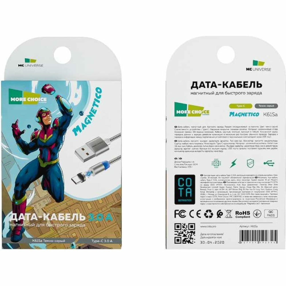 Кабель More choice K61Sa 1м Dark Grey Smart USB 3.0A для Type-C Magnetic серый (K61SADARKGREY)