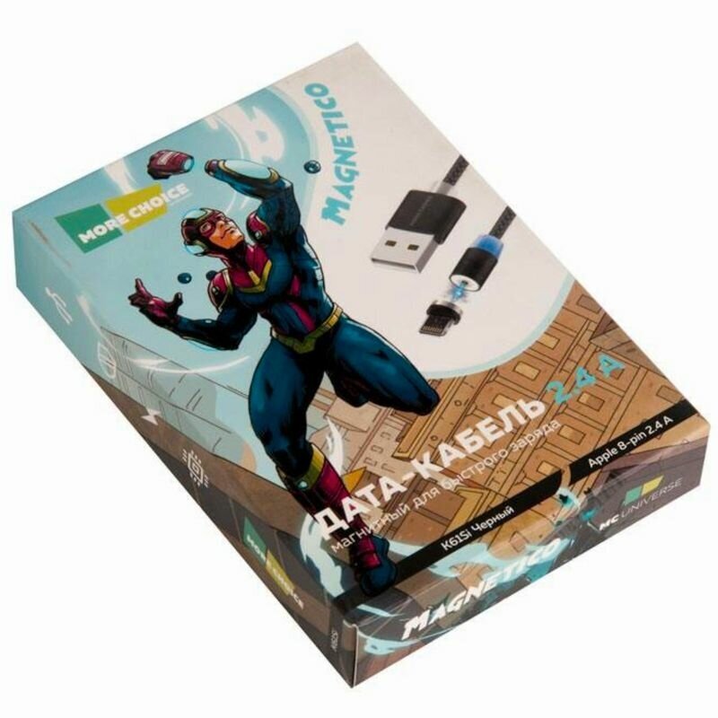 Кабель More choice K61Si 1м Black Smart USB 2.4A для Apple 8-pin Magnetic черный K61Si Smart USB 2.4A для Apple 8-pin Magnetic 1м (Black)