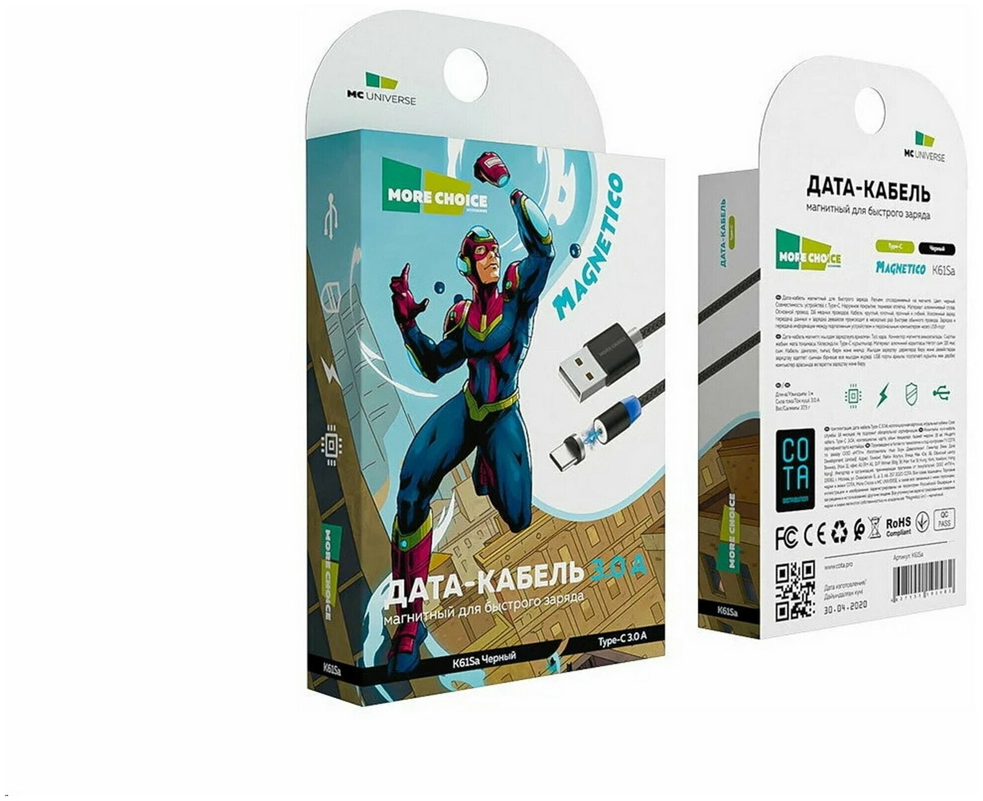 Кабель More choice K61Sa Black 1м Smart USB 3.0A для Type-C Magnetic черный K61Sa Smart USB 3.0A для Type-C Magnetic 1м (Black)