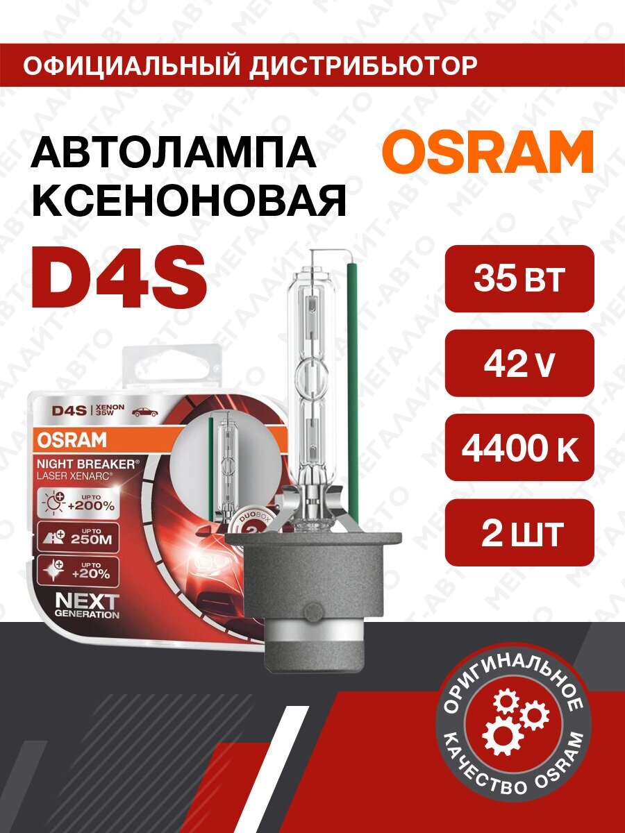 На сегодняшний день товар «Лампа автомобильная OSRAM D4S 35W P32d-5+200% Xenarc Night Braker Laser 4400K 2шт 85V 66440XNL2» можно купить с кешбеком в 1 магазине: Яндекс.Маркет
