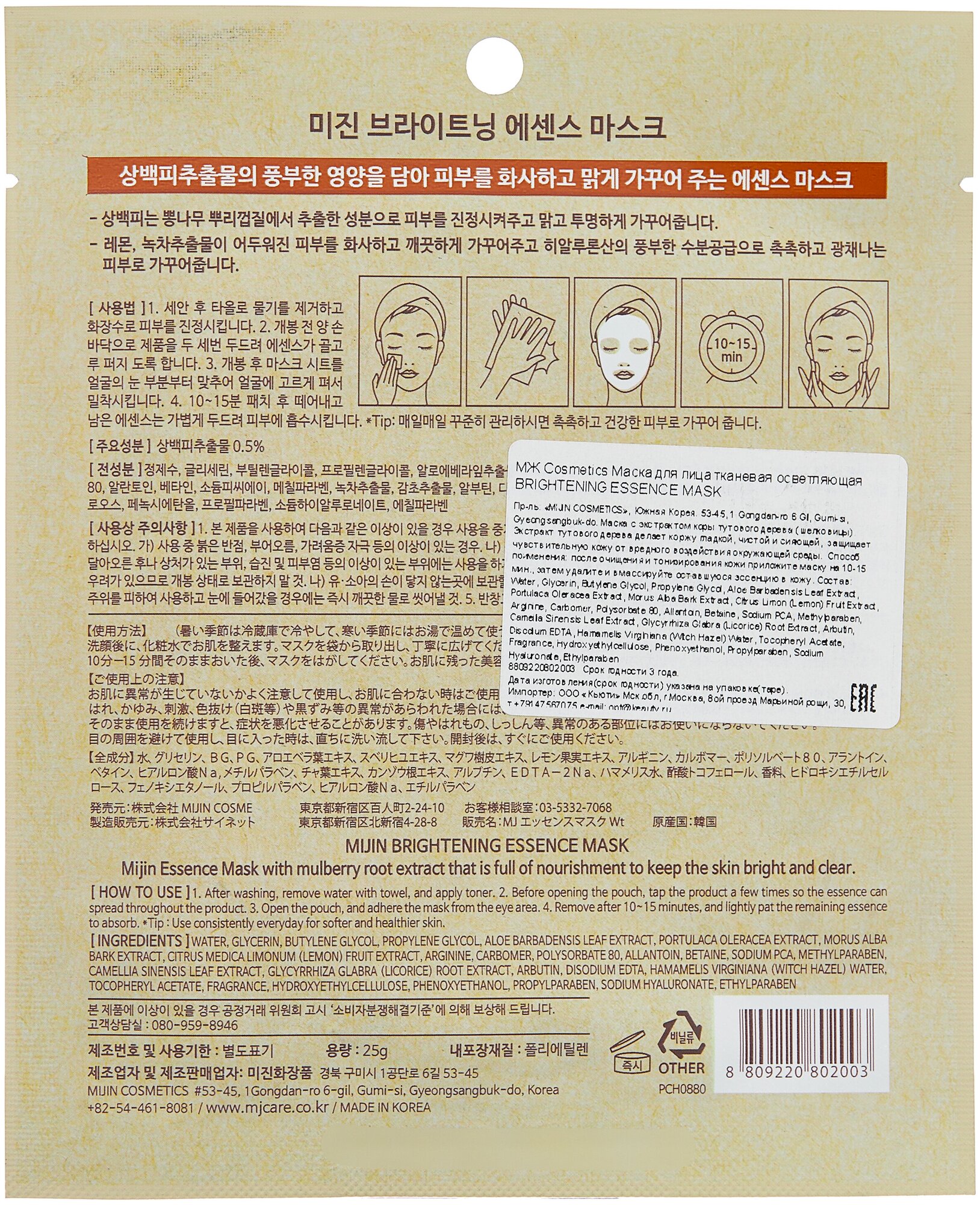 | Коллекция | Mijin Cosmetics Essence Mask |