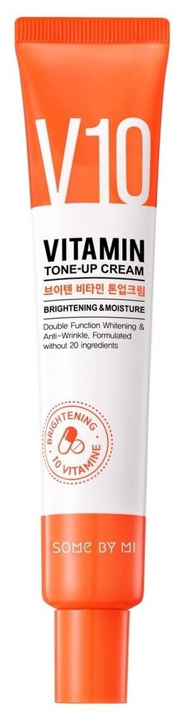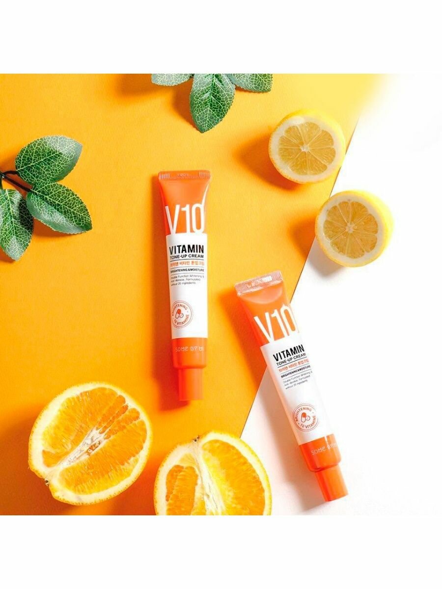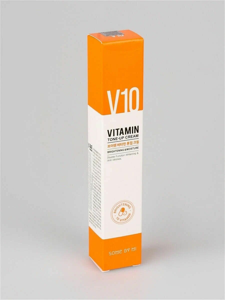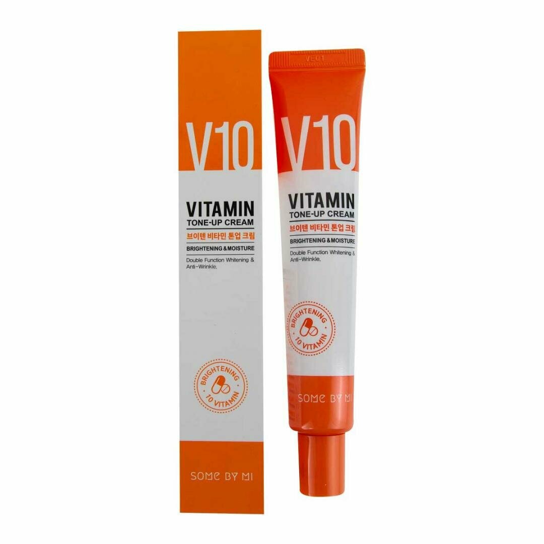 Осветляющий витаминный крем для лица Some By Mi V10 Vitamin Tone-Up Cream содержит комплекс из 10 важнейших витаминов, а также натуральные экстракты фруктов и ягод. Помогает улучшить цвет и текстуру кожи, а также повышает её тонус, успокаивает, питает, придаёт лицу яркость и сияние.