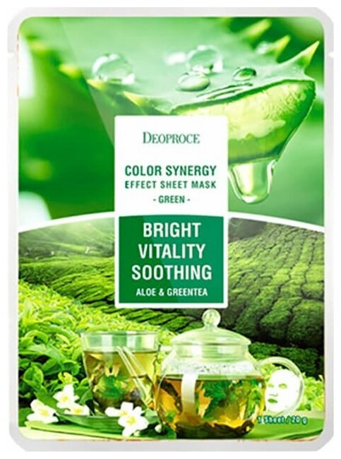 Маска тканевая на основе экстрактов алоэ и зеленого чая DEOPROCE COLOR SYNERGY EFFECT SHEET MASK GREEN 20g 20гр (ДП1244)