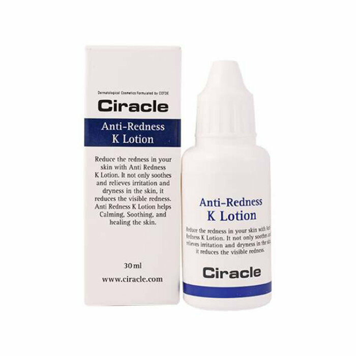 Anti-Redness K Lotion – это лосьон против покраснений от южнокорейского бренда Ciracle, разработанный специально для сухой, нормальной и чувствительной кожи. Данный лосьон увлажняет кожу, насыщая ее влагой, витаминами и микроэлементами. Он помогает убрать шелушения, покраснения и раздражения, а также успокаивает и смягчает кожу. Лосьон отлично справляется с розацеей, осветляет пигментные пятна, в.т. постакне, и придает лицу свежесть и здоровое сияние. Кроме того, он укрепляет стенки сосудов, делая кожу более гладкой, упругой и эластичной, и разглаживает мелкие морщинки. Благодаря регулярному использованию этого лосьона стимулируется обновление кожи, выравнивается ее тон и рельеф, и лицо приобретает ухоженный вид.