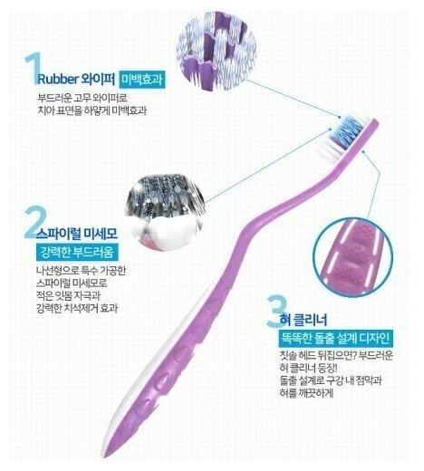 Curved Nine Mixed Fine Toothbrush. Зубная щетка Зубная щетка с отбеливающим эффектом сочетает в себе самые лучшие качества современных щеток. Она имеет два вида щетины. Коническая спиральная щетина эффективно очищает, а резиновые ворсинки отбеливают эмаль. Ультратонкие щетинки, изогнутые под углом 5°, хорошо проникают в межзубное пространство, удаляя из него частички пищи. Мягкая фактурная поверхность обратной стороны щетки хорошо подходит для чистки языка. Щетка помогает устранять проблемы с деснами, бережно очищая и массируя их. Эргономичная ручка изогнута под углом 21°, что позволяет легко ухаживать за коренными зубами.