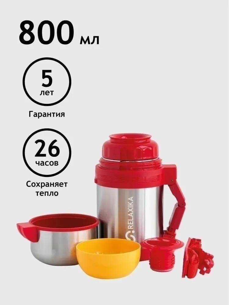 Универсальный термос Relaxika 201 с двойной пробкой и двойной чашей подходит для еды и напитков, обладает высокими показателями удержания температуры. Крышку термоса можно использовать как чашку или миску, также в комплекте дополнительная чаша.