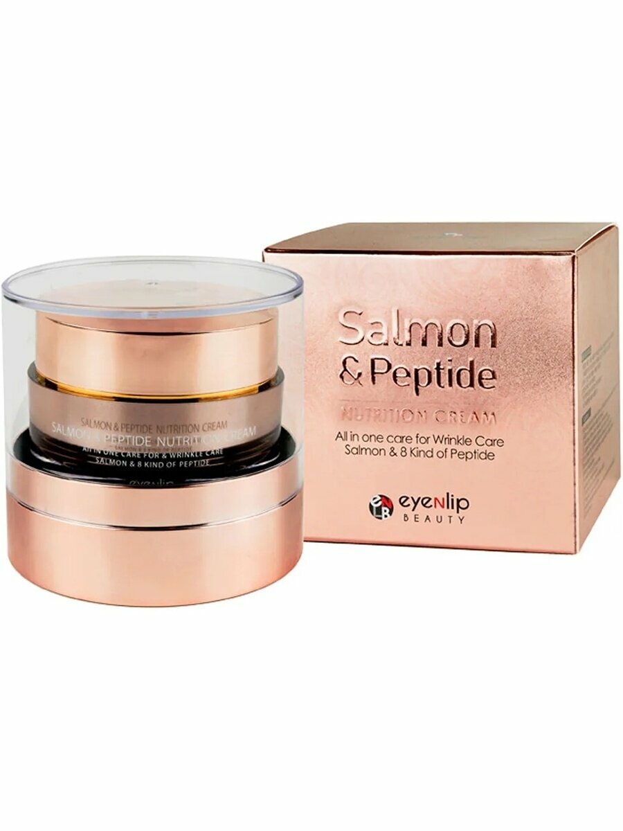 Лосось, который входит в топ-10 супер-полезных продуктов, полезен и для кожи. Поэтому не удивительно, что лососевое масло стало ключевым компонентом в составе линии средств от EYENLIP. Масло лосося является источником незаменимых омега-кислот, аминокислот, витаминов A, D и E, а также содержит мощный антиоксидант астаксантин, благодаря чему кожа лица будет дольше оставаться молодой и красивой. Крем EYENLIP Salmon Oil Nutrition Cream с маслом лосося особенно рекомендуется для сухой и тусклой, потерявшей жизненную силу кожи. Крем питает, увлажняет, повышает защитный барьер, способствует разглаживанию морщин и осветлению пигментации, активизирует клеточное деление, помогает справиться с различными раздражениями, снимает стресс усталой и поврежденной кожи. Также в составе крема:. Керамиды – способствуют поддержанию оптимального уровня влаги, восстанавливают поврежденный липидный барьер кожи, защищают ее проникновения различных болезнетворных микроорганизмов. Благодаря керамидам, поверхность кожи становится более плотной и гладкой. Комплекс пептидов, которые запускают процессы регенерации, стимулируют синтез коллагена, ускоряют клеточное деление, благодаря чему разглаживаются морщины и предупреждается появление новых, выравнивается тон кожи, лицо обретает свежесть и сияние.