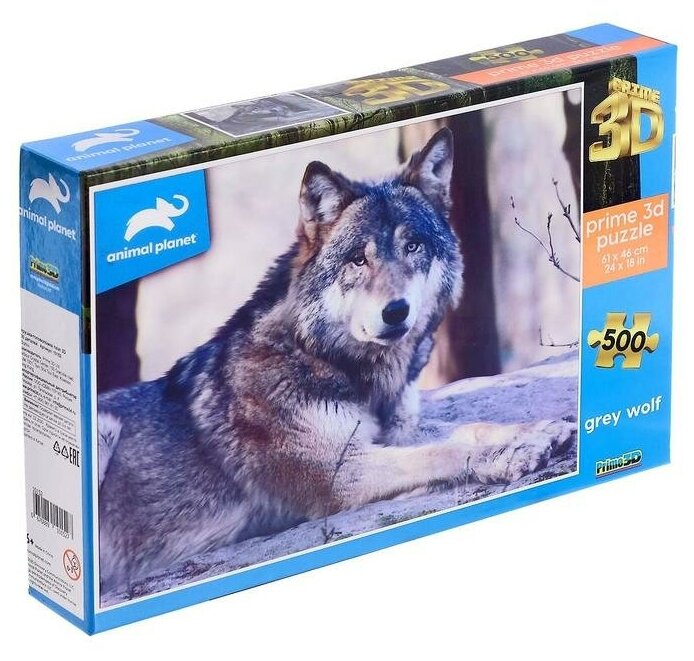 Пазлы Prime 3D - это необычные пазлы, с 3D изображениями с эффектом глубины (стереоэффектом), также известные под названием линзовидные (лентикулярные) пазлы. Пазлы ТМ Prime 3D отличаются высочайшим качеством исполнения, потрясающим эффектом глубины изображения, яркими сочными живыми цветами. Волк - пазл из коллекции художника Ховарда Робинсона.