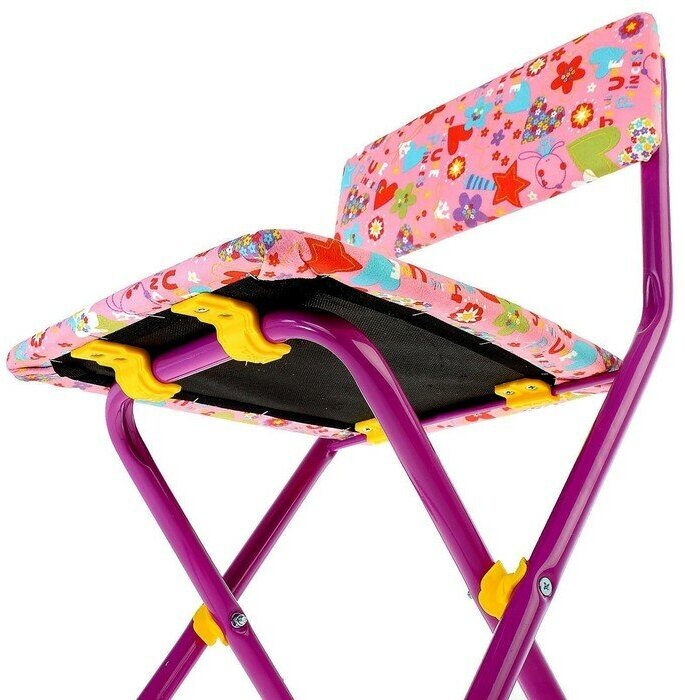 Мягкий складной детский стул оснащен очень приятным замшевым сиденьем и удобной спинкой. Он станет прекрасным приобретением для ребенка, который занимается рисованием, играет в настольные игры, учится читать и писать. Такая мебель отличается высоким качеством исполнения. Материал каркаса — прочный металл, а на ножки надеты пластиковые наконечники для большей устойчивости. Позитивное настроение владельцам стульчика подарит и принт в виде забавных разноцветных зверят. Ткань, которой покрыты спинка и сиденье, легко очищается любыми моющими средствами. Стул просто и быстро складывается и становится очень компактным.