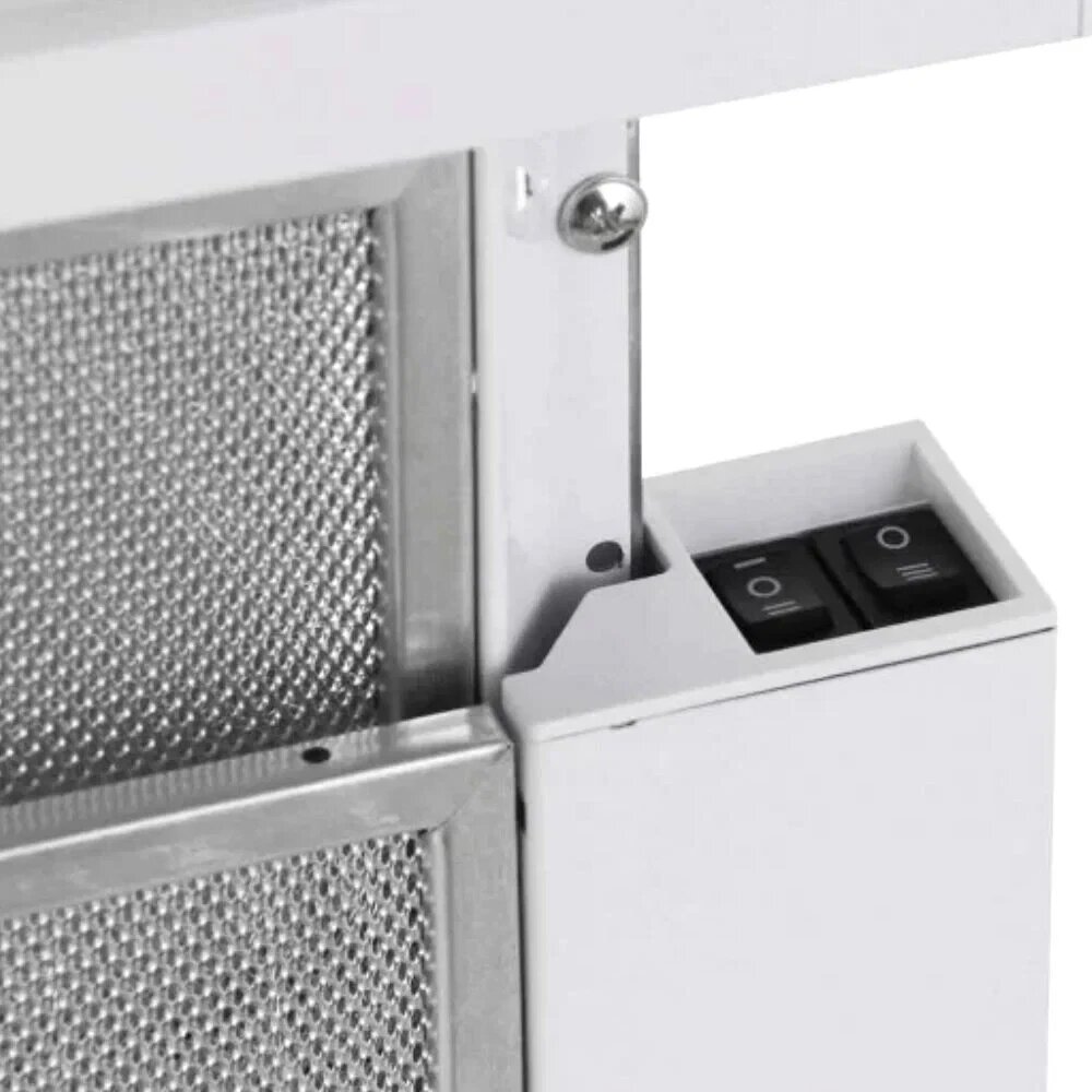Выдвижной экран увеличивает площадь поглощения испарений. Фильтр из алюминия задерживает частицы жира и копоти, предотвращая их попадание внутрь устройства. Дополнительно можно приобрести угольную кассету, которая устраняет неприятные запахи.