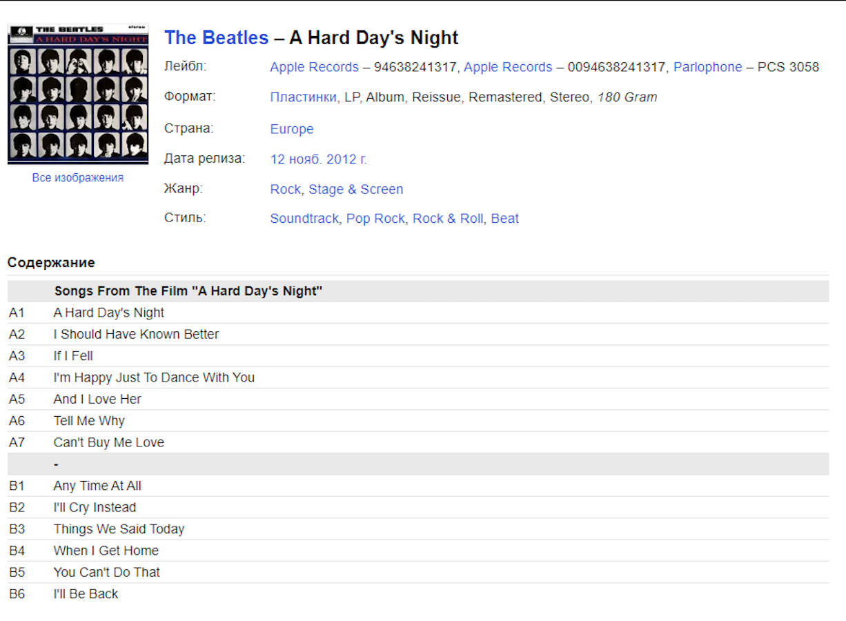 Сервис сравнения цен СкидкаГИД предлагает сравнить цены на товар «Beatles A Hard Day's Night Виниловая пластинка EMI»