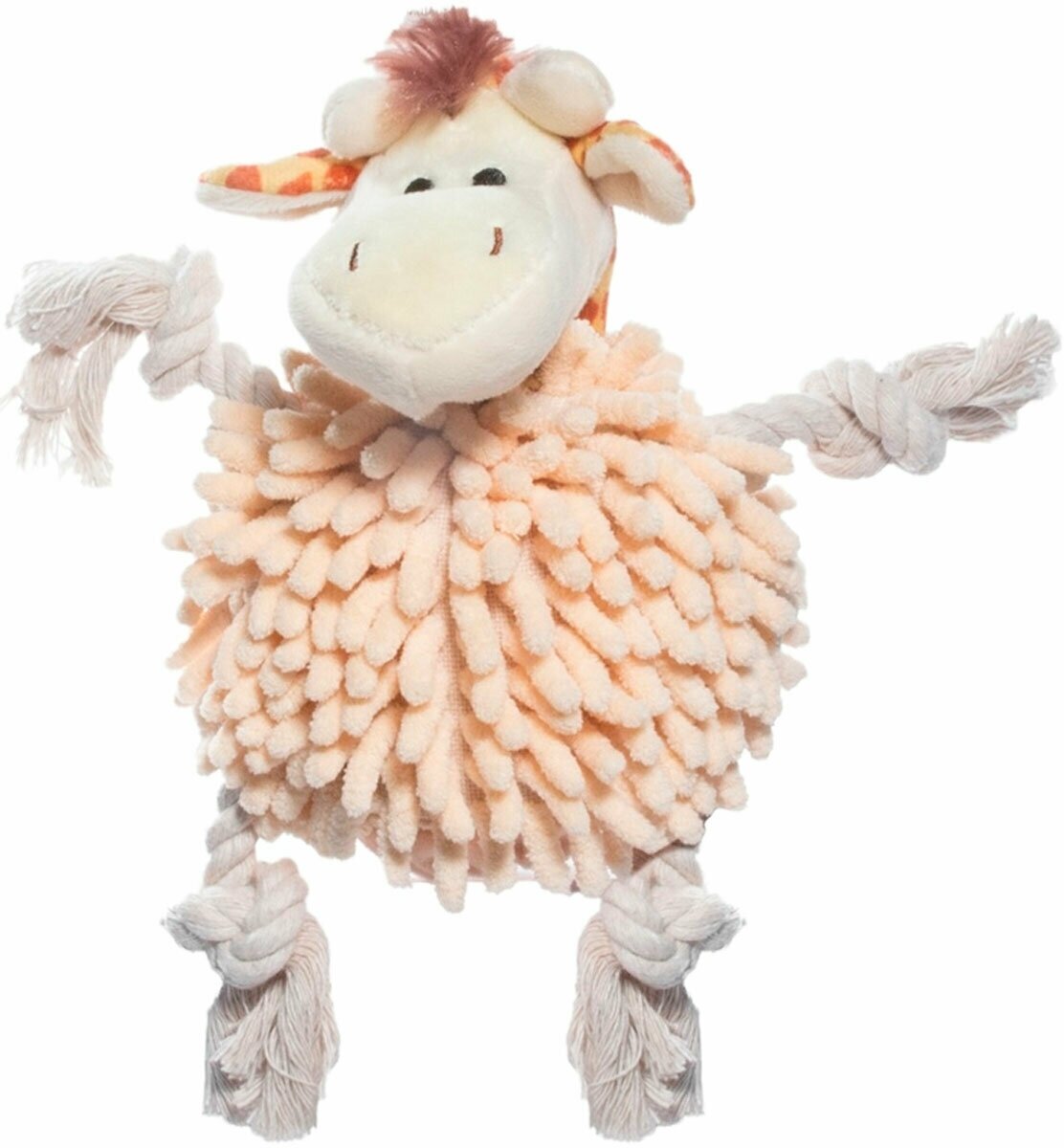 Мягкая игрушка для собак изготовлена из высококачественного текстильного материала, внутри которого спрятан теннисный мяч. Игрушка подойдет для активных игр с питомцем. Неабразивный, нетоксичный материал не ранит зубы и дёсны. Игрушка оснащена пищалкой для привлечения внимания и дополнена прочной веревкой.