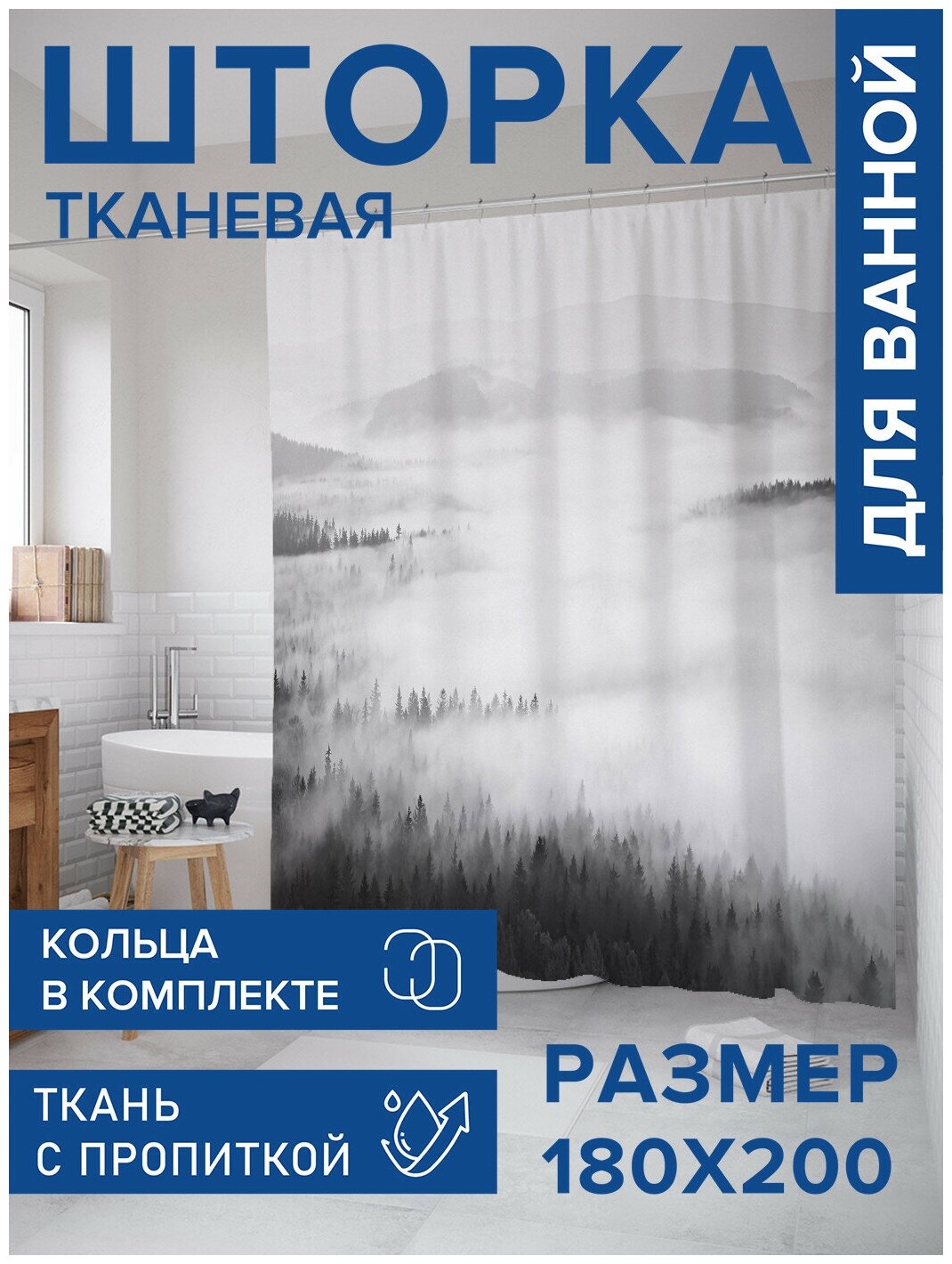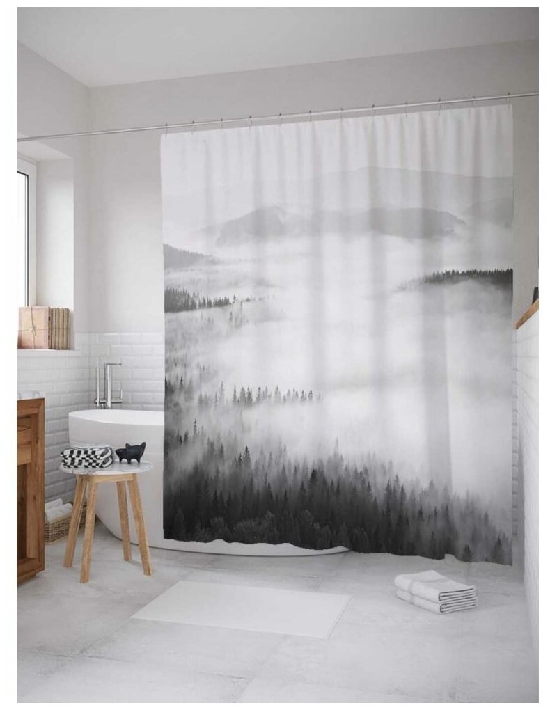 Шторка-занавеска для ванной JOYARTY Штора занавеска для ванной Туманные холмы из сатена 180х200 см с крючками
