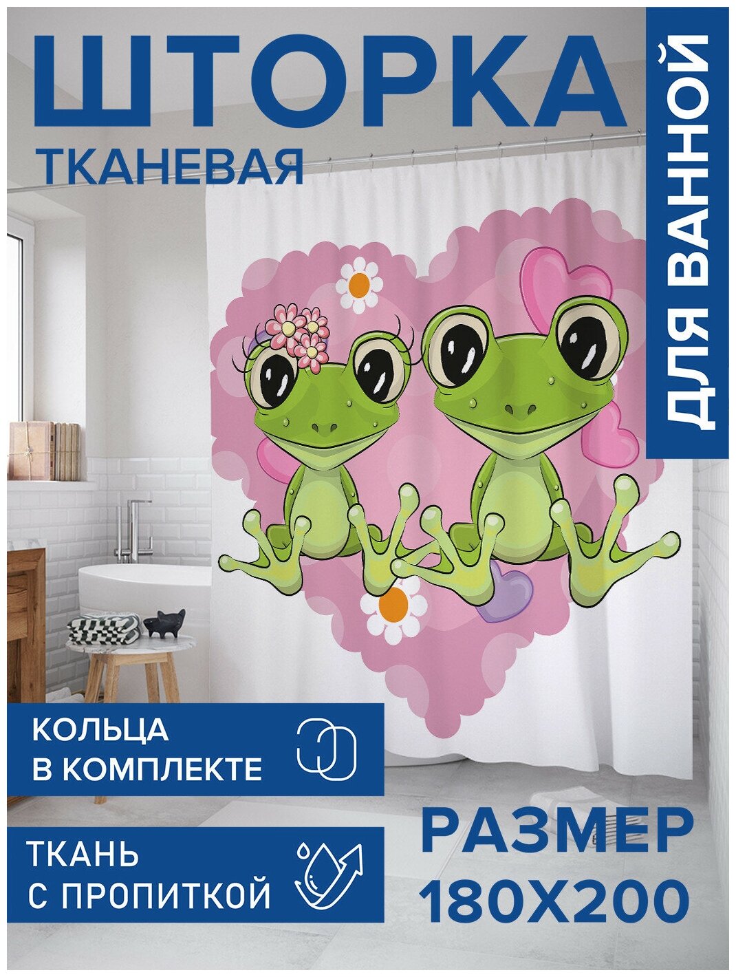 Шторка-занавеска для ванной JOYARTY Штора занавеска для ванной Друзья-лягушки из сатена 180х200 см с крючками