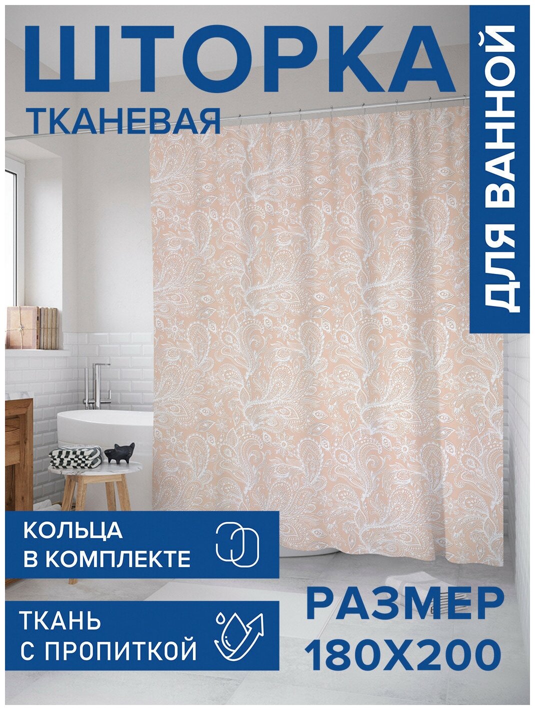 Комплектация: шторка для ванной 180х200 см, крючки – 12 шт. Материал: сатен; состав: полиэстер 100%. Плотность: 80 гр/кв.м.