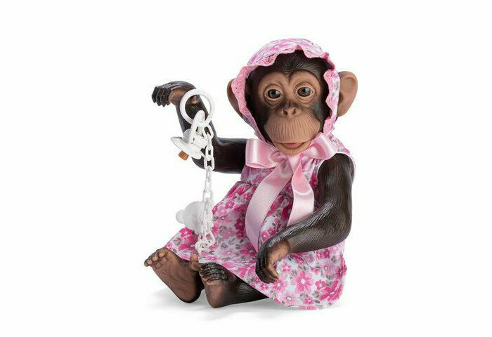 Детально проработаны все части тела, ручки, ножки, голова вращаются, шимпанзе может сидеть. Дизайнерские комплекты, комплекте фирменная пустышка с держателем и памперс.