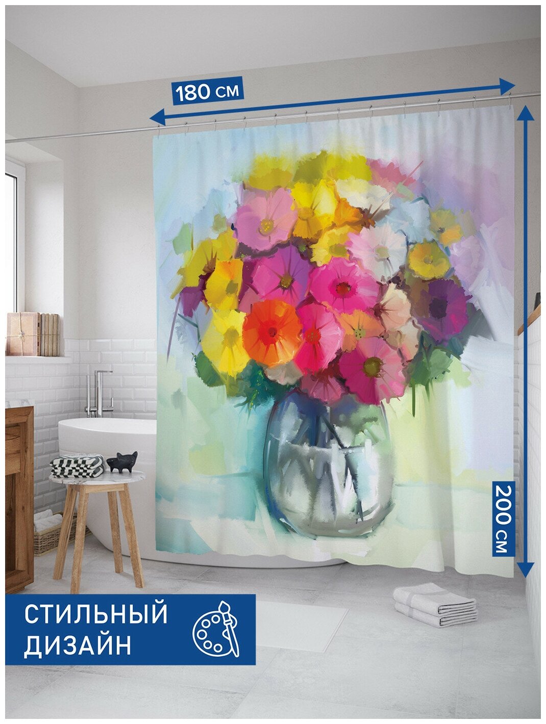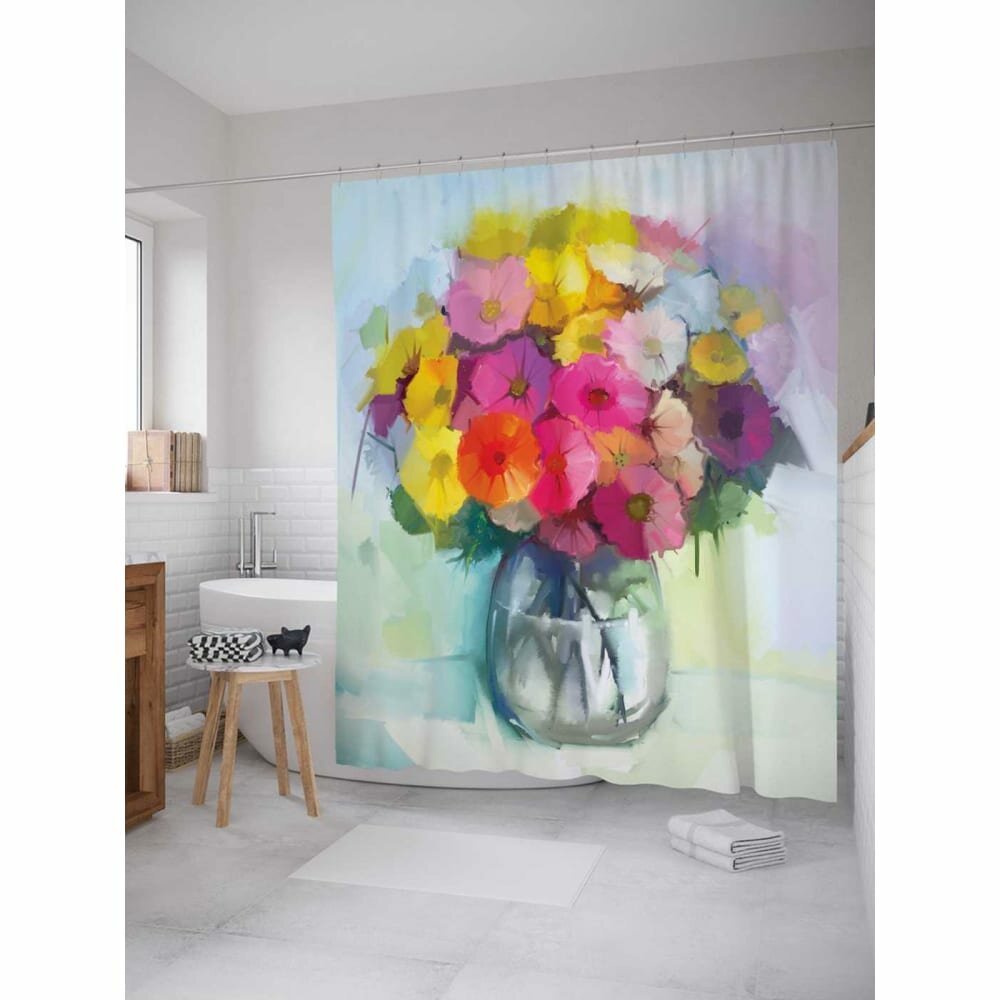 Шторка-занавеска для ванной JOYARTY Штора занавеска для ванной Ваза цветов из сатена 180х200 см с крючками