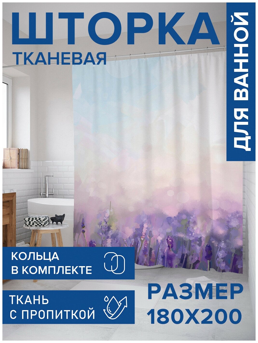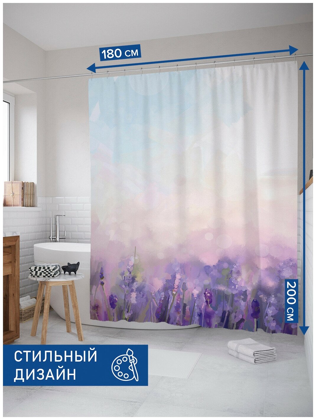 Шторка-занавеска для ванной JOYARTY Штора занавеска для ванной Сиреневые цветы из сатена 180х200 см с крючками