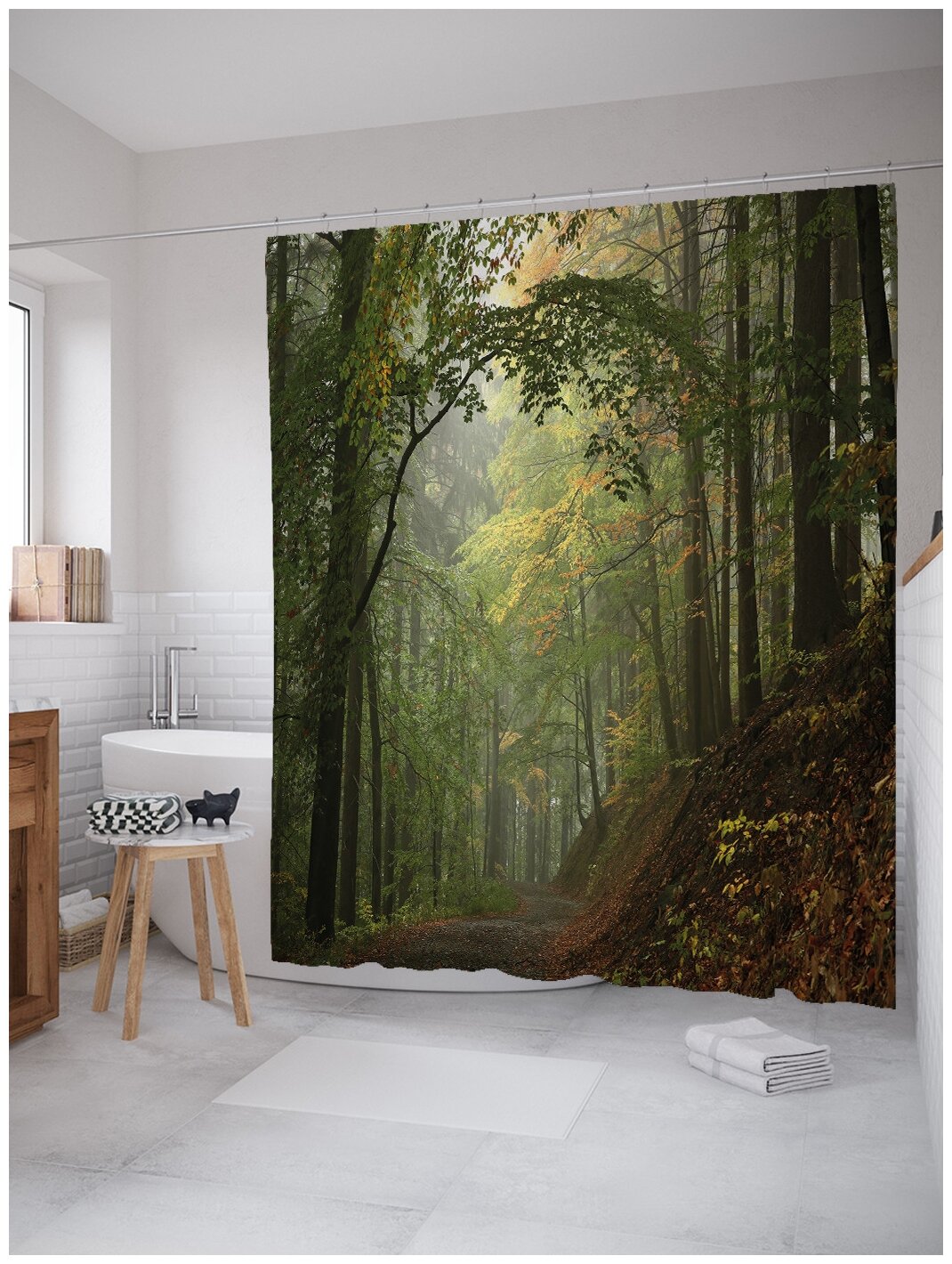 Шторка-занавеска для ванной JOYARTY Штора занавеска для ванной Спокойный лес из сатена 180х200 см с крючками