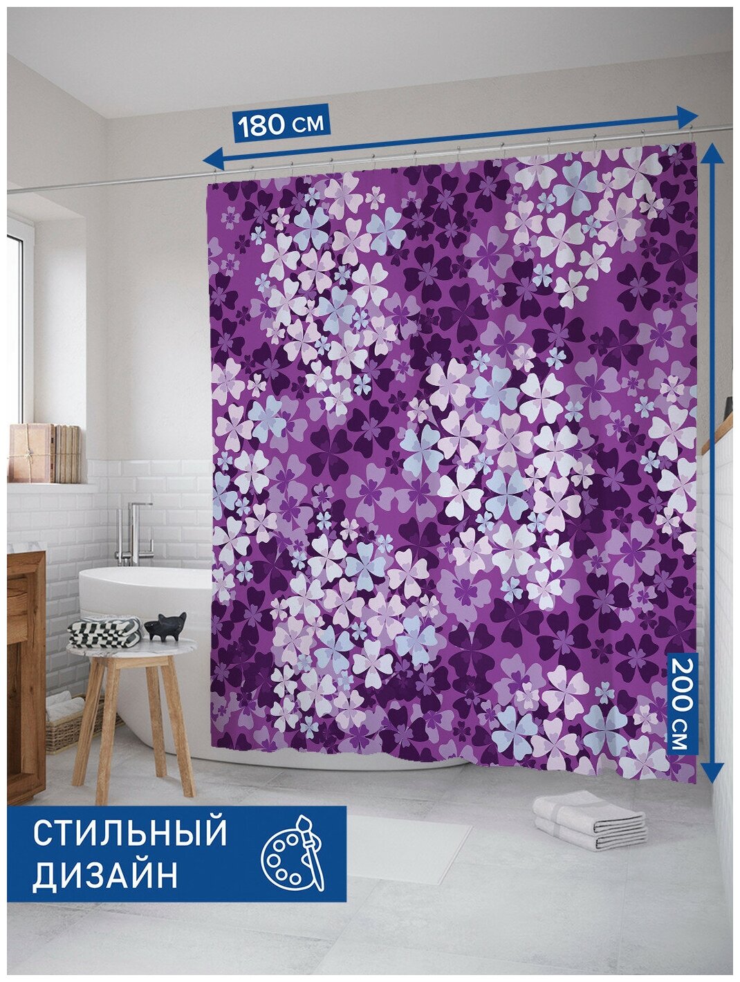 Шторка-занавеска для ванной JOYARTY Штора занавеска для ванной Яркая сирень из сатена 180х200 см с крючками