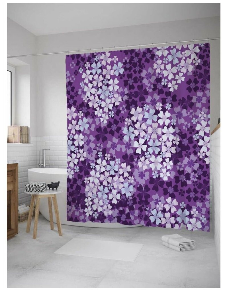 Сервис сравнения цен СкидкаГИД предлагает сравнить цены на товар «Шторка-занавеска для ванной JOYARTY Штора занавеска для ванной Яркая сирень из сатена 180х200 см с крючками»