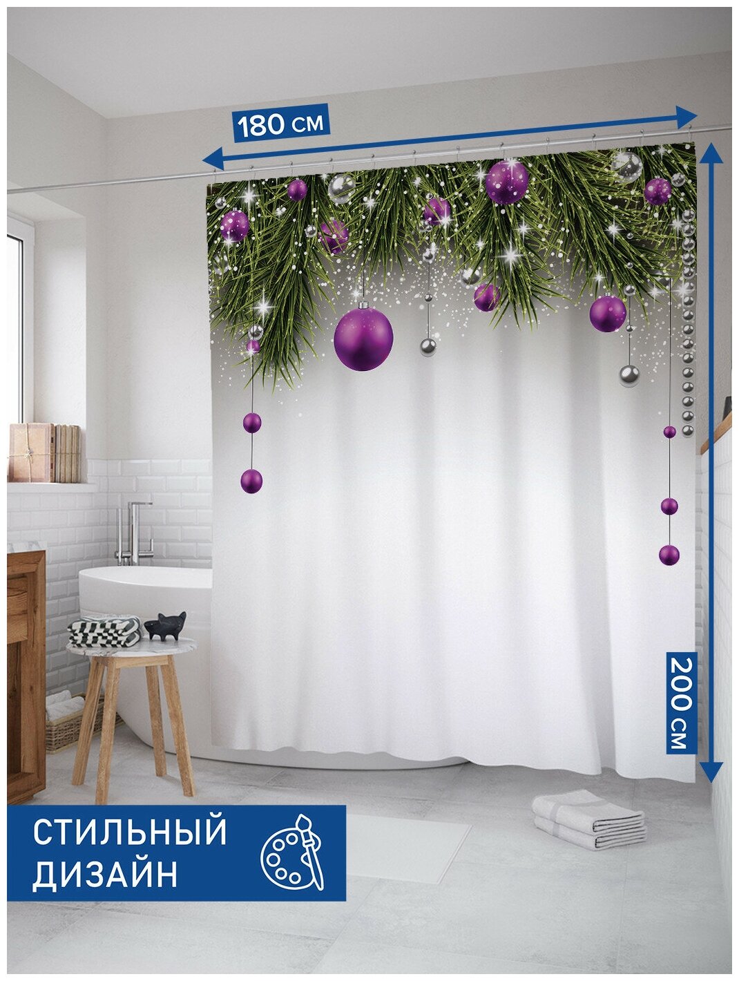 Шторка-занавеска для ванной JOYARTY Штора занавеска для ванной Украшение елки из сатена 180х200 см с крючками