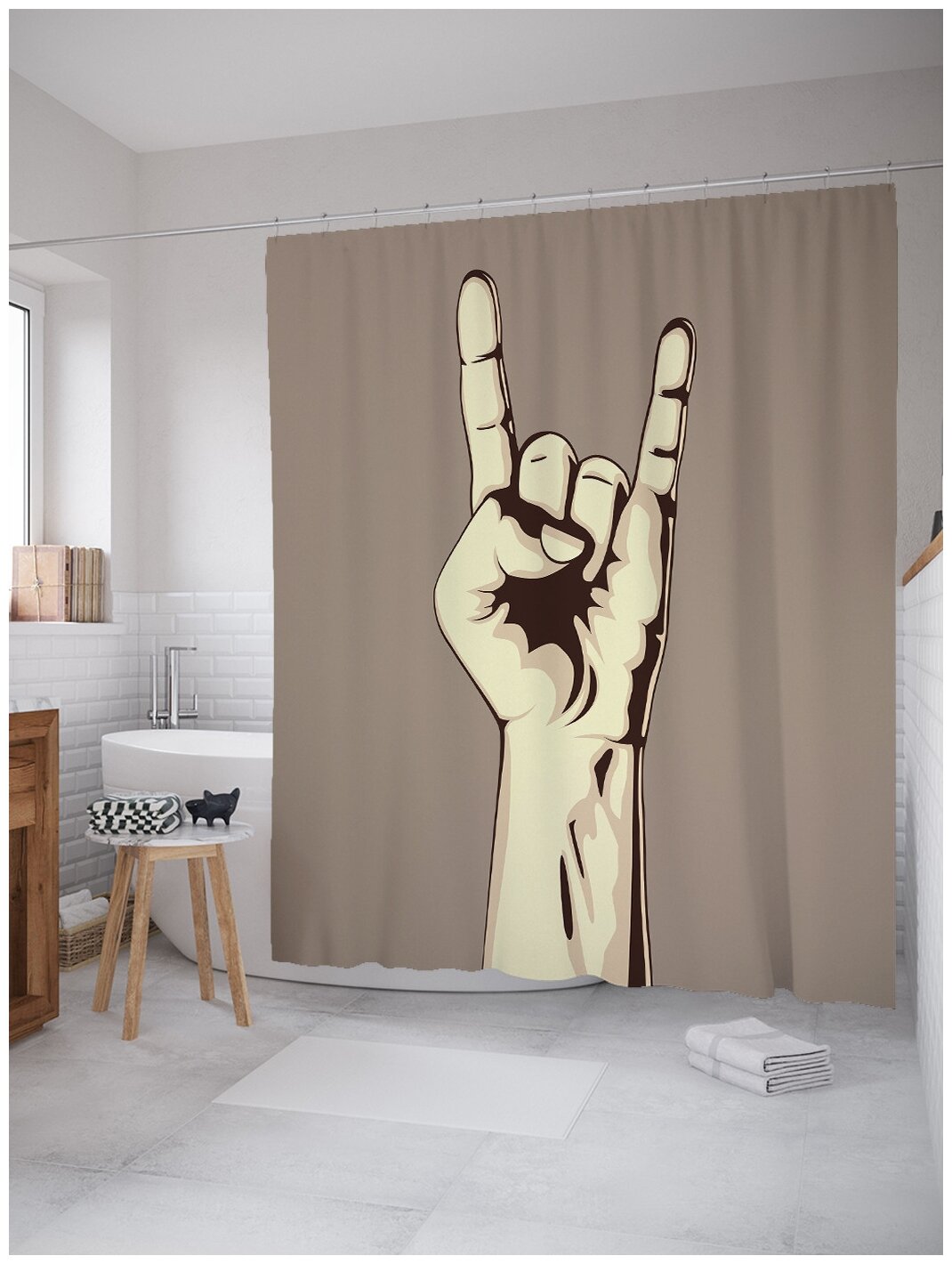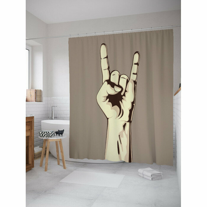Шторка-занавеска для ванной JOYARTY Штора занавеска для ванной Жест коза из сатена 180х200 см с крючками