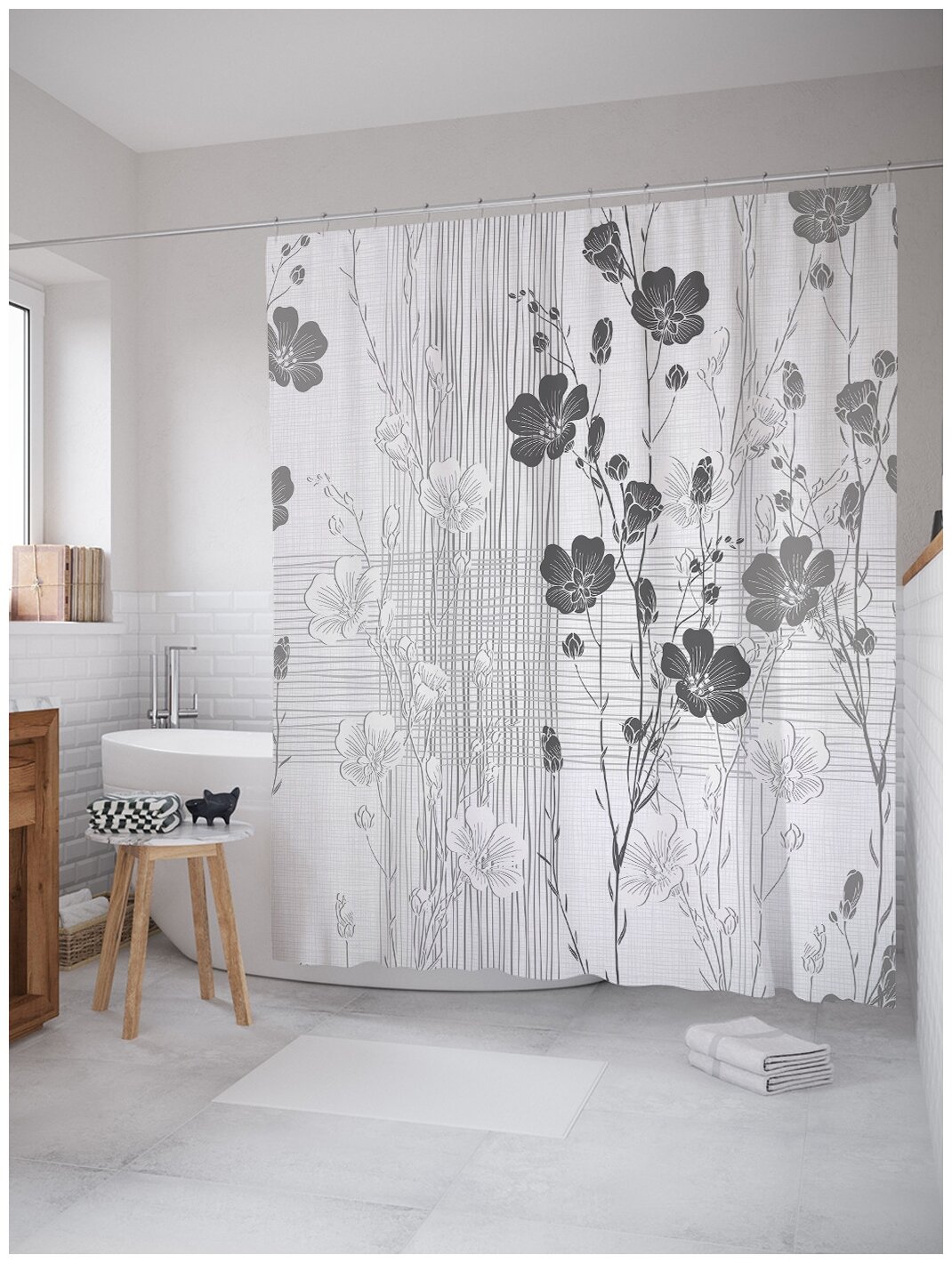 Шторка-занавеска для ванной JOYARTY Штора занавеска для ванной Цветы под дождем из сатена 180х200 см с крючками