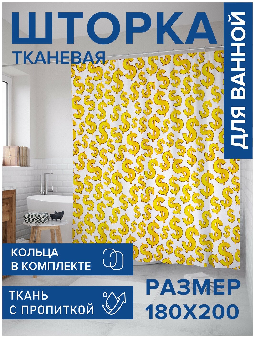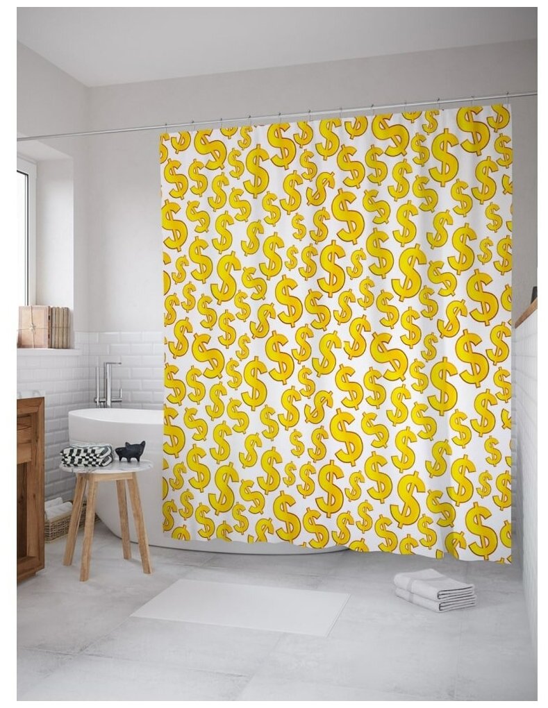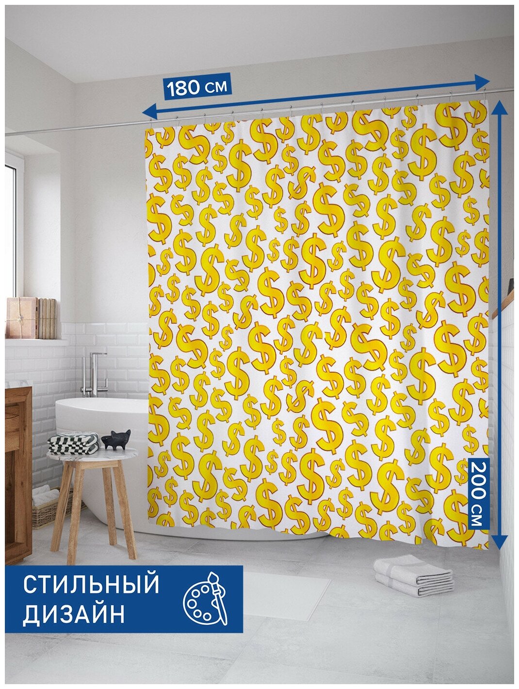 Шторка-занавеска для ванной JOYARTY Штора занавеска для ванной Знак доллара из сатена 180х200 см с крючками sc_54398