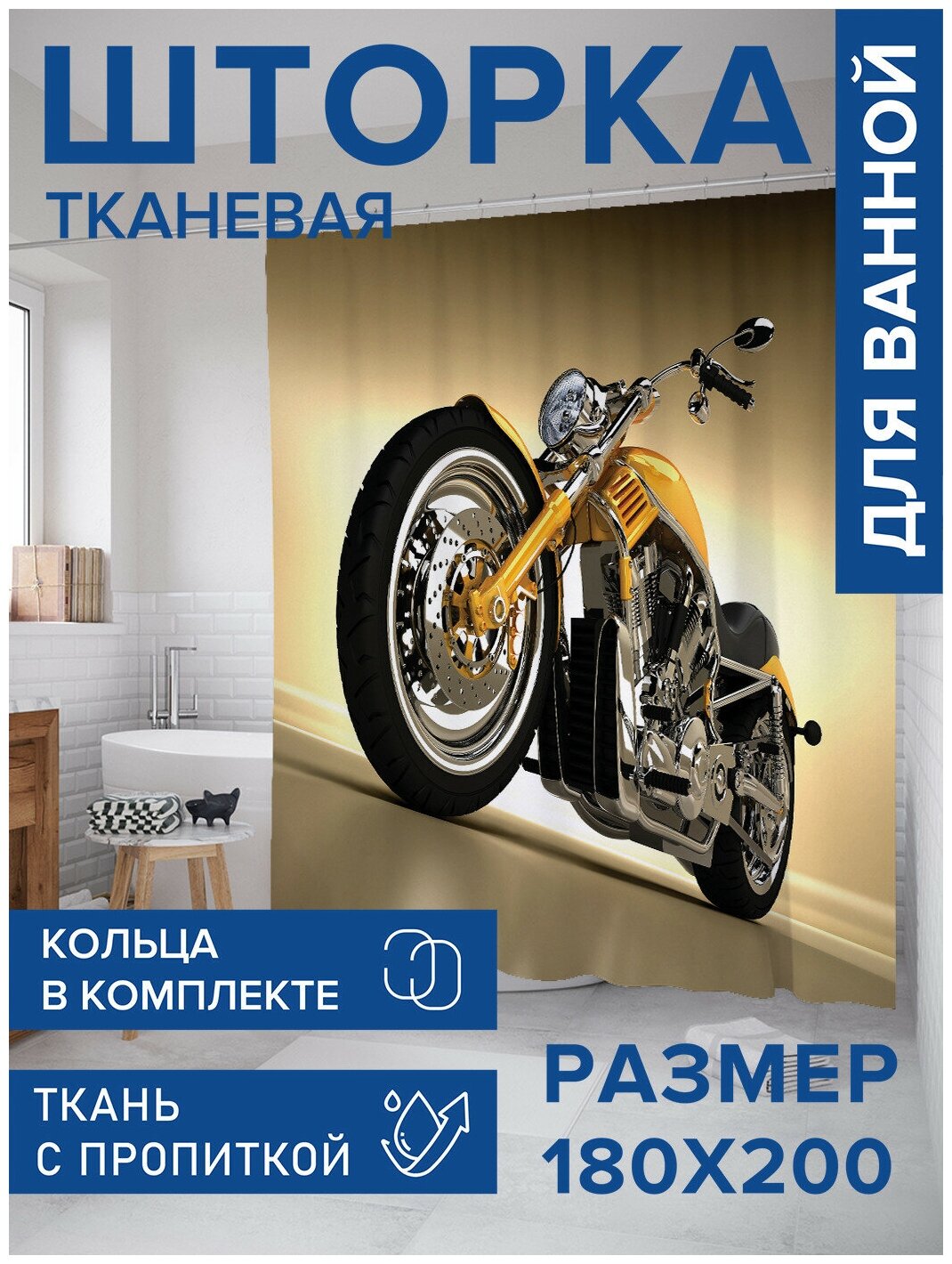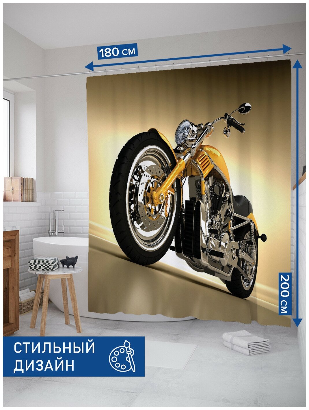 Шторка-занавеска для ванной JOYARTY Штора занавеска для ванной Желтый мотоцикл из сатена 180х200 см с крючками