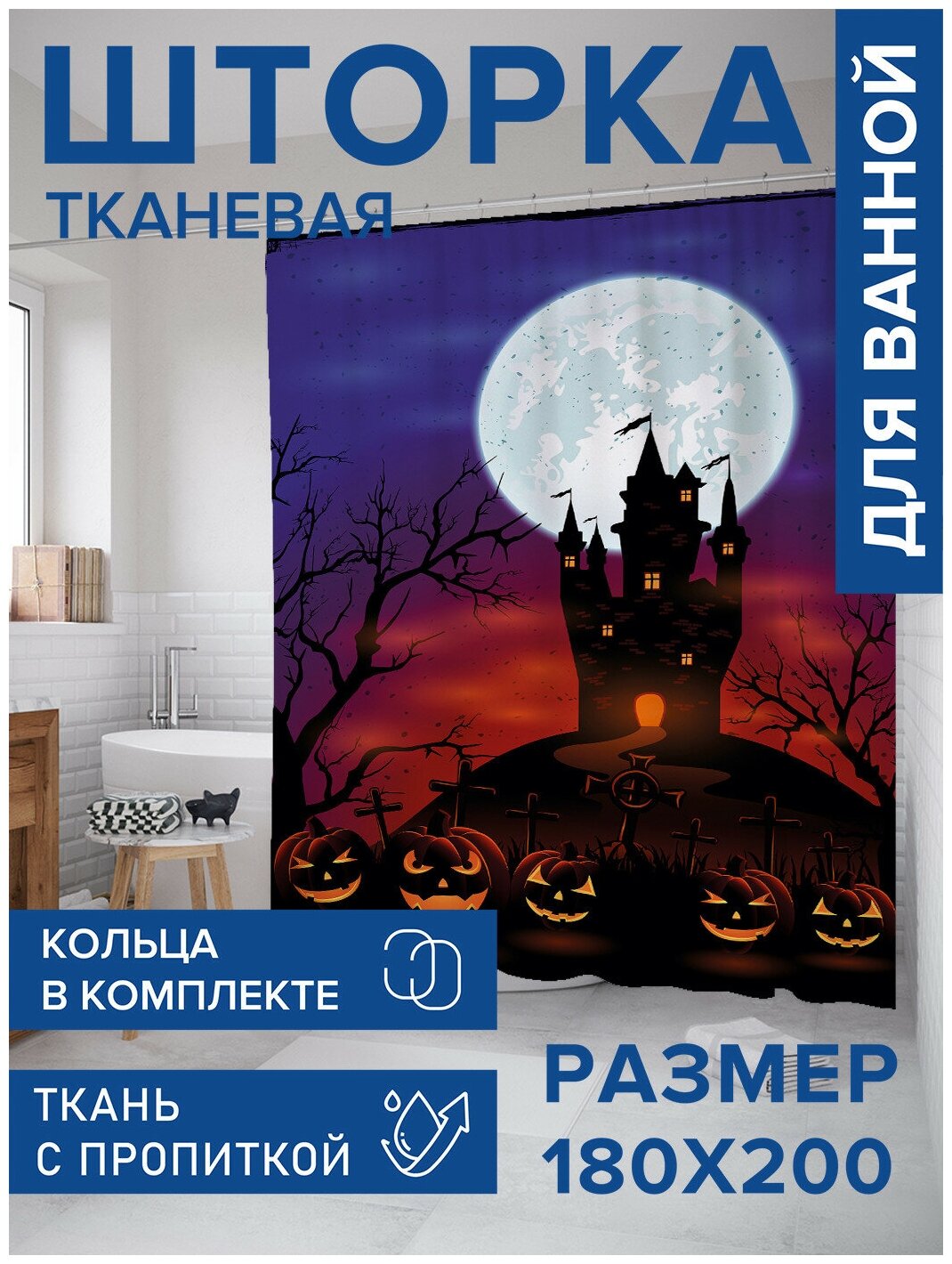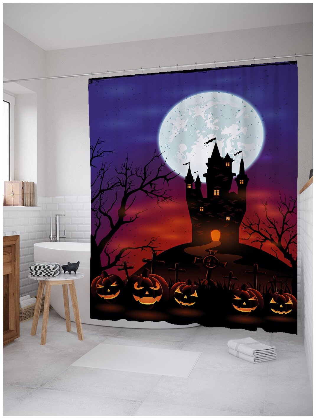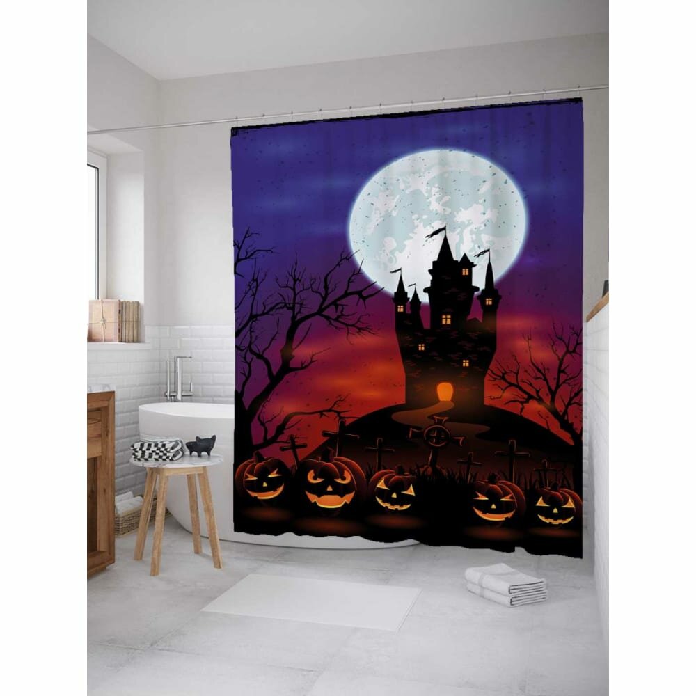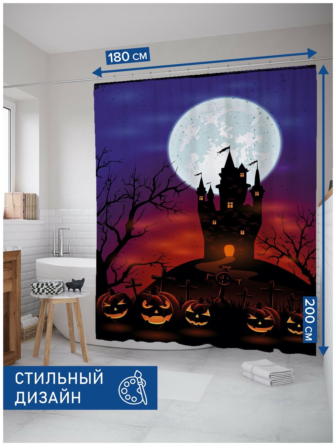 Шторка-занавеска для ванной JOYARTY Штора занавеска для ванной Замок на холме из сатена 180х200 см с крючками