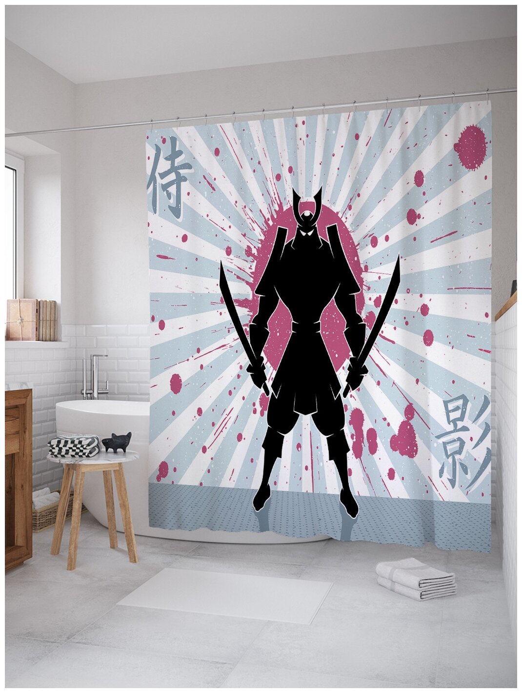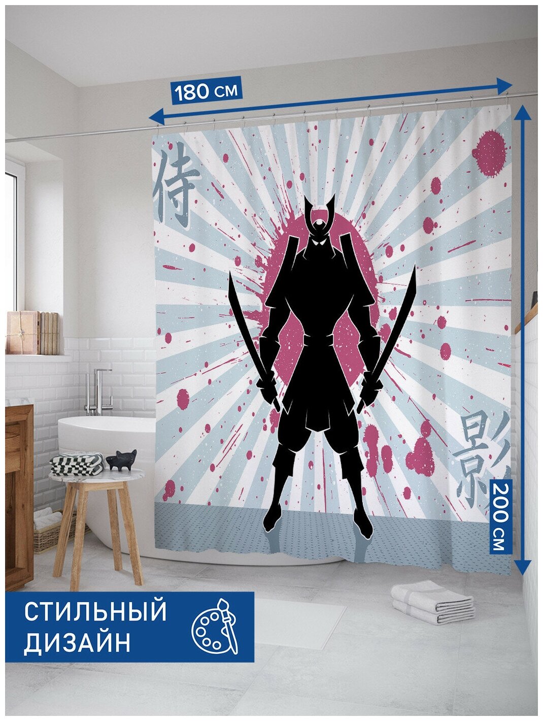 Штора для ванной JoyArty "Разъяренный самурай" из сатена 180х200 см с крючками Штора занавеска для ванной Разъяренный самурай из сатена 180х200 см с крючками