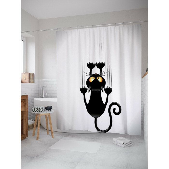 Сервис сравнения цен СкидкаГИД предлагает сравнить цены на товар «Шторка-занавеска для ванной JOYARTY Штора занавеска для ванной Вредный кот из сатена 180х200 см с крючками»