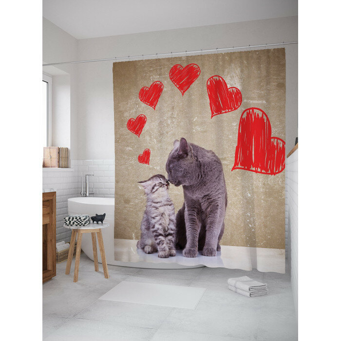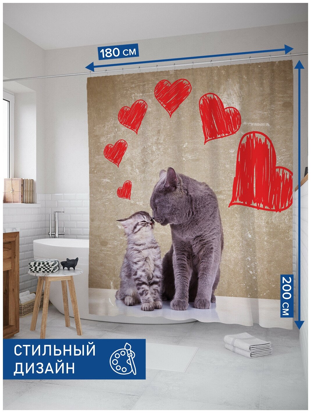 Шторка-занавеска для ванной JOYARTY Штора занавеска для ванной Любвеобильные коты из сатена 180х200 см с крючками