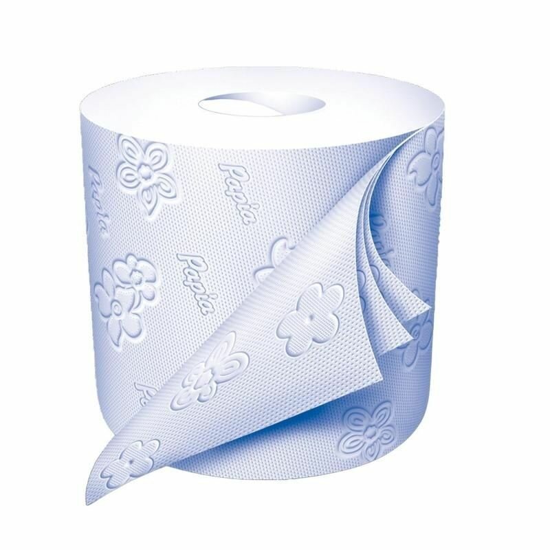 Туалетная бумага Papia белая с тиснением и перфорацией.
