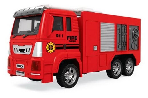 Пожарная машина, инерционная, без эффектов. Игрушка предназначена для сюжетно-ролевых игр, способствует развитию воображения, познавательного мышления и моторики.