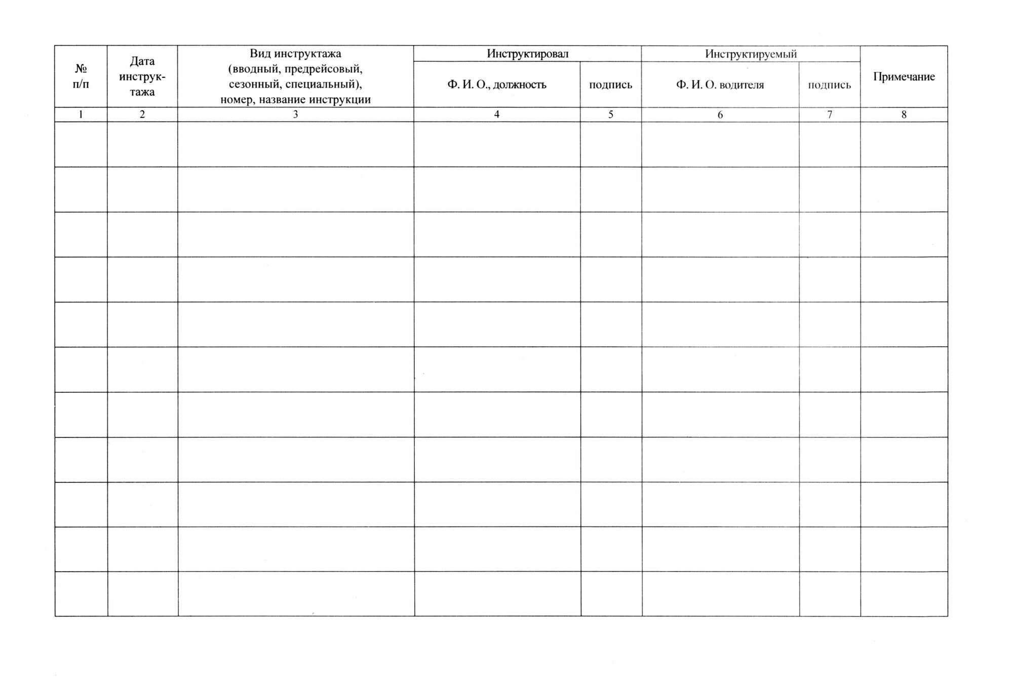 Журнал учёта инструктажа водителей по технике безопасности и безопасности дорожного движения.