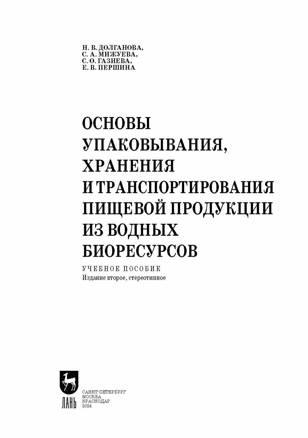 Основы упаковки хранения и транспортировки пищевой продукции из водн. СПО (Долганова Наталья Вадимовна, Мижуева Светлана Александровна, Газиева Сарижат Омаровна); Лань, 2022