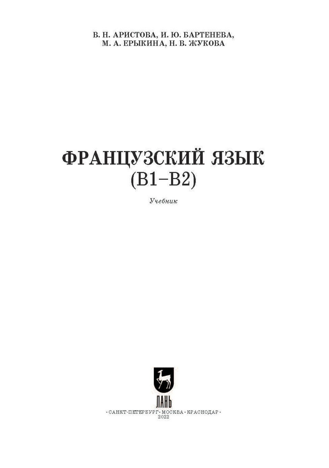 Французский язык (В1-В2). Учебник (Бартенева Ирина Юрьевна, Аристова Валентина Николаевна, Ерыкина Мария Андреевна); Лань, 2022