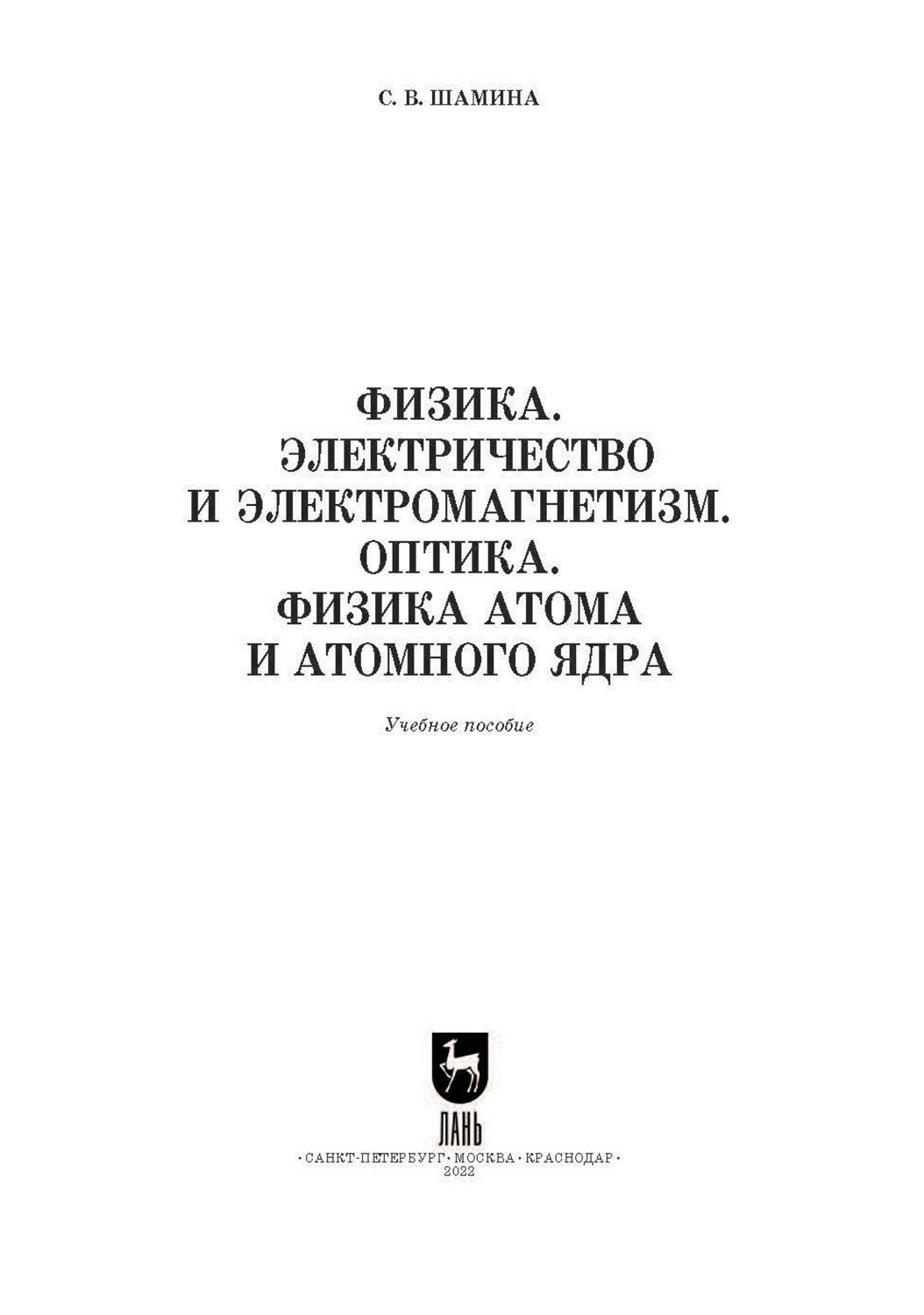 Физика. Электричество и электромагнетизм. Оптика. Физика атома и атомного ядра (С. Шамина); Издательство ЛАНЬ, 2022
