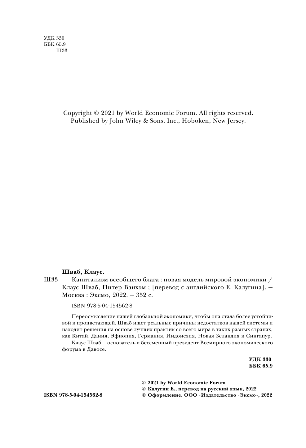 Капитализм всеобщего блага Новая модель мировой экономики (Шваб Клаус Мартин); ООО "Издательство "Эксмо", 2022
