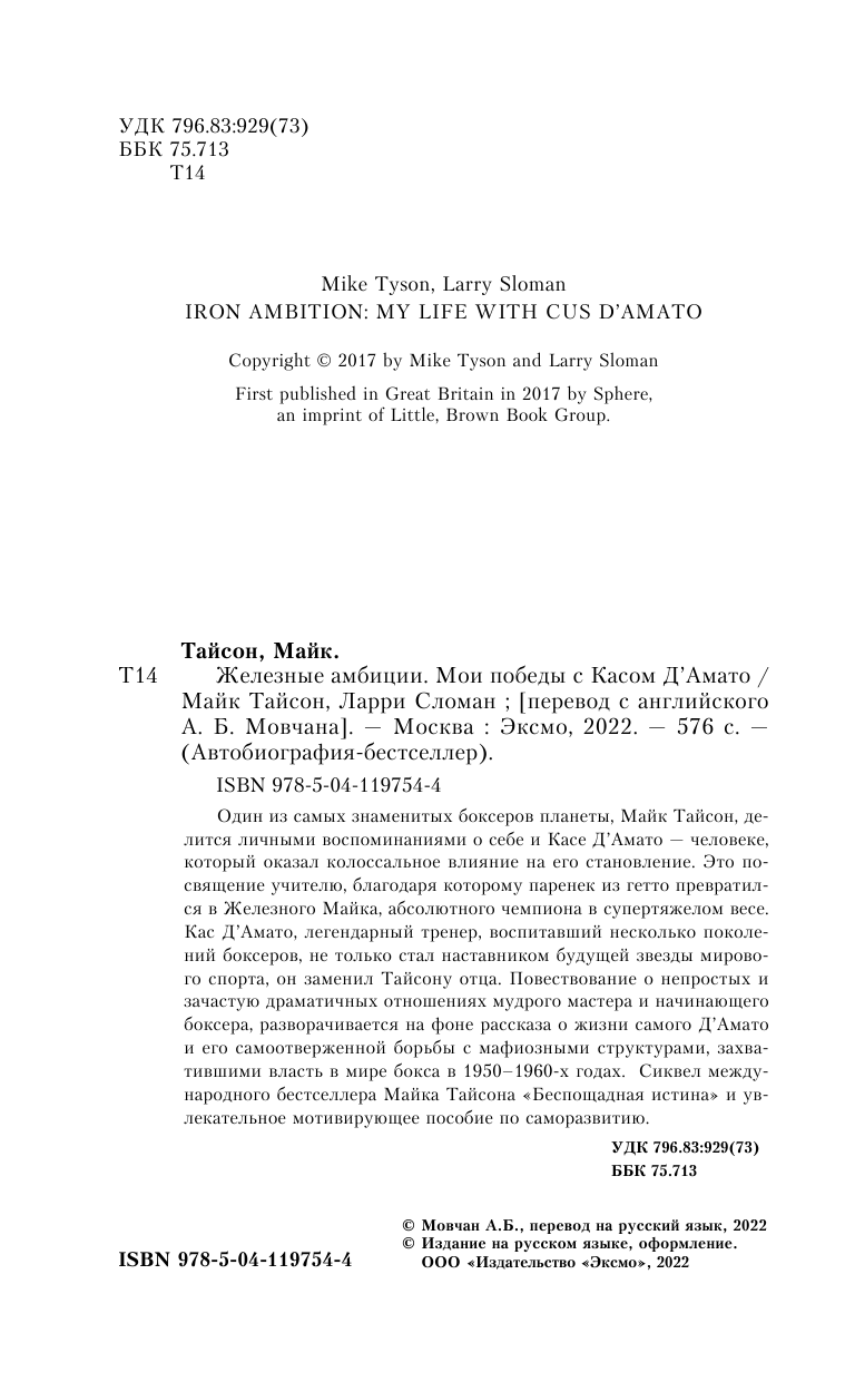 Железные амбиции. Мои победы с Касом Д Амато (Тайсон Майк; Сломан Ларри); Эксмо, Редакция 1, 2022