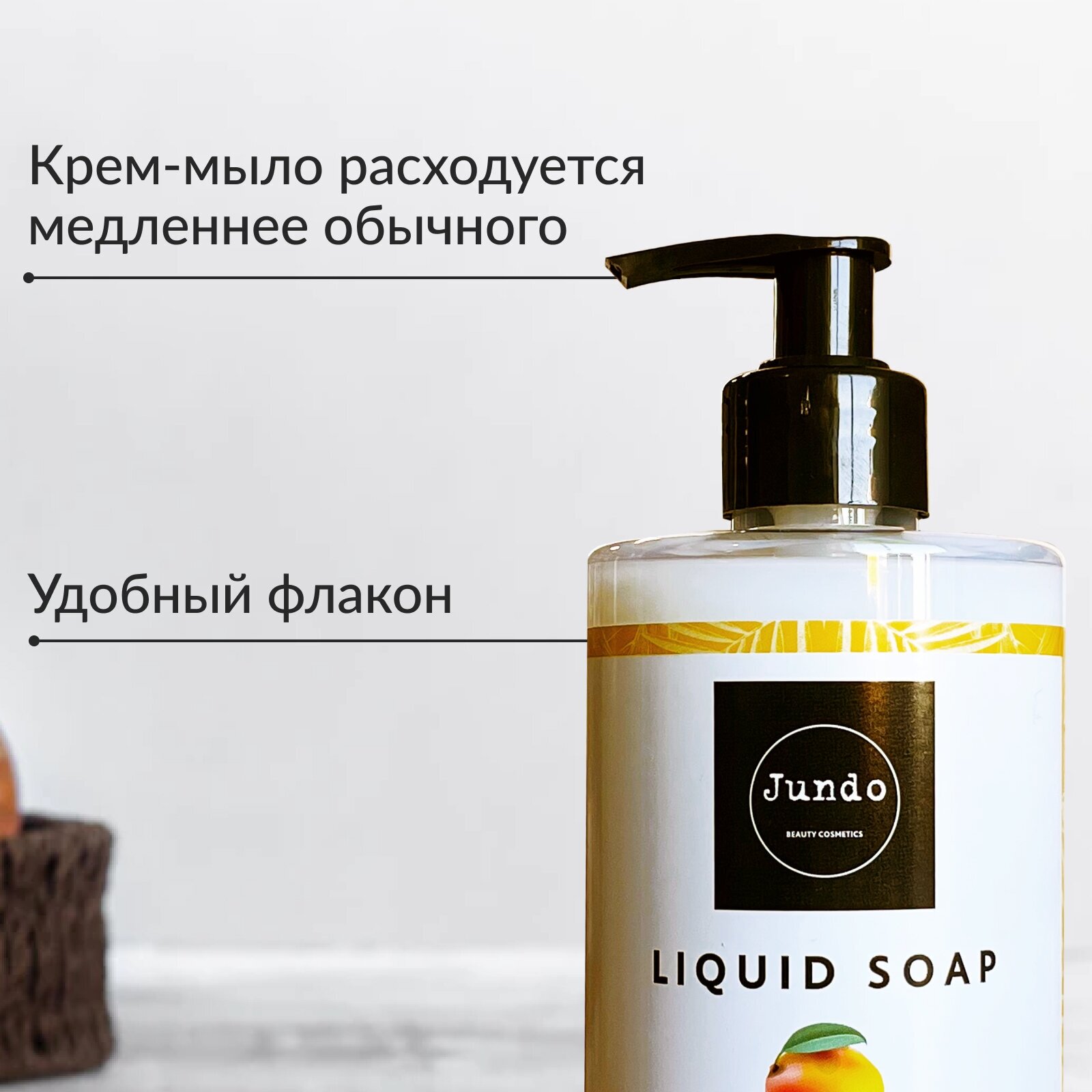 Крем мыло Jundo с гиалуроновой кислотой и эфирными маслами бережно очищает и заботиться о вашей коже. Комплекс натуральных эфирных масел, гиалуроновая кислота и глицерин обеспечивают длительное увлажнение и питание, придают коже сияние и нежность. Консистенция молочка, очищающие способности и свойства увлажняющего крема сочетают в себе все необходимое для ухода за кожей. Уникальный состав создаст на коже нано слой, защищающий и оберегающий от внешнего воздействия и раздражителей: ветра, холода, воды и антисептиков. Аромат спелого манго приятно дополнит процедуру мытья рук. Подарите своей коже нежность, увлажненность, питание и заботу, используя крем мыло Jundo ежедневно. Ваша кожа станет нежной как шелк, увлажненной и напитанной. Jundo- заботясь о семье, не забывай о себе!
