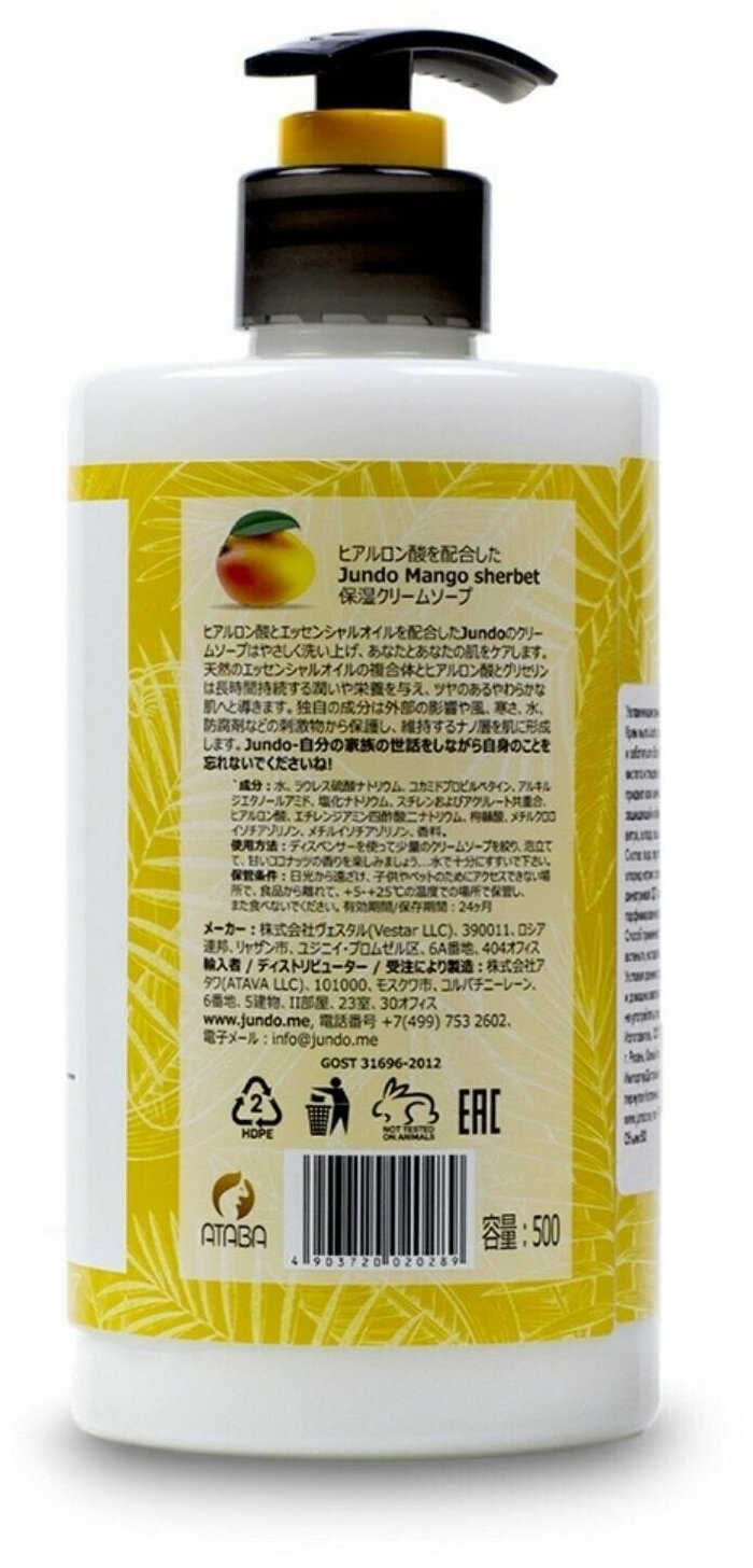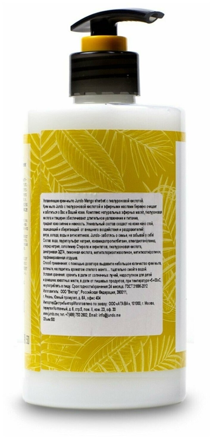 Крем-мыло Jundo Mango sherbet Увлажняющее с гиалуроновой кислотой 500мл