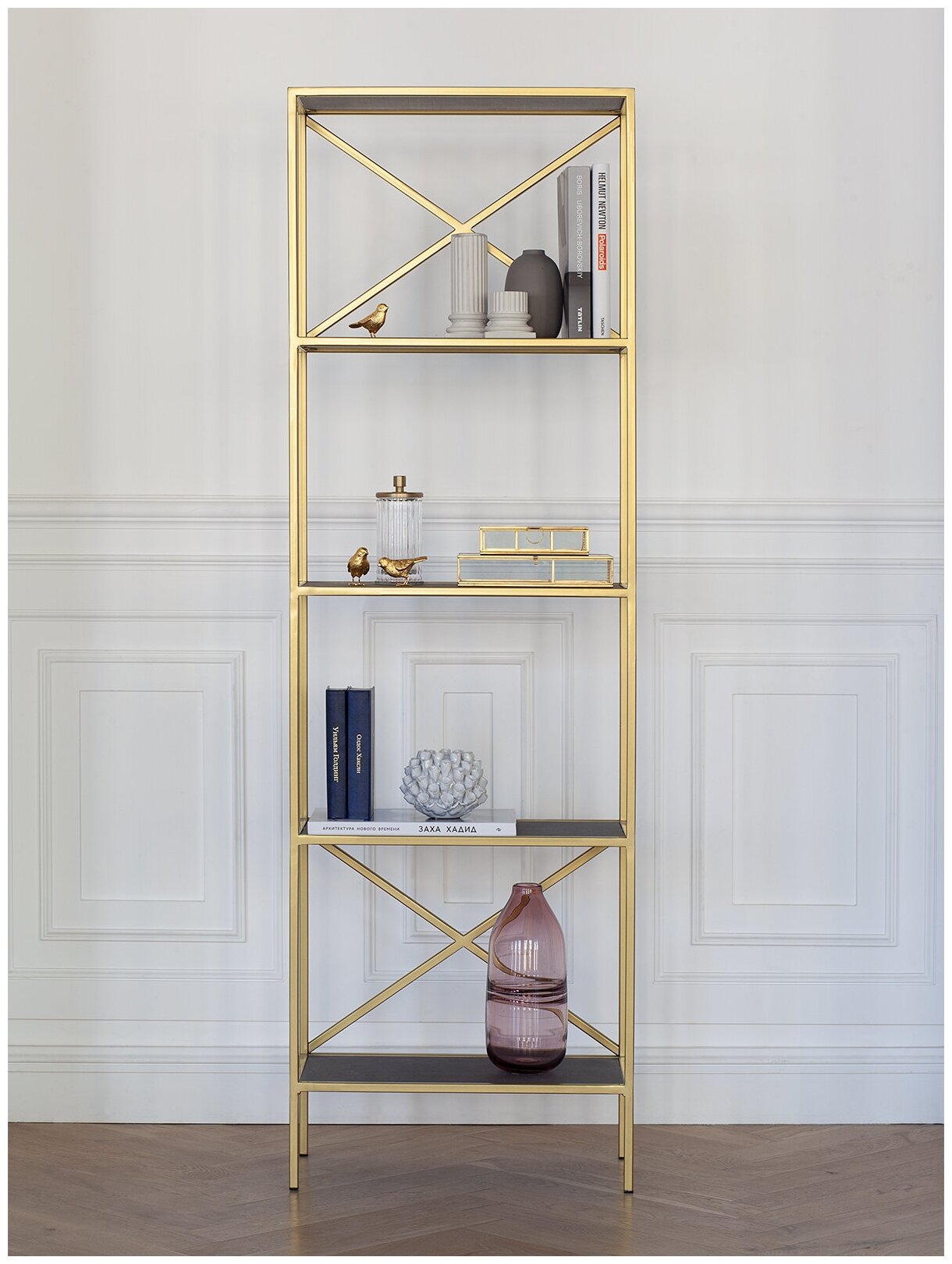 Золотой стеллаж KARIN с полками из керамогранита привлекает внимание элегантным дизайном и функциональностью. Утонченное сочетание золотого каркаса и каменных полок позволит разместить стеллаж в современном интерьере.