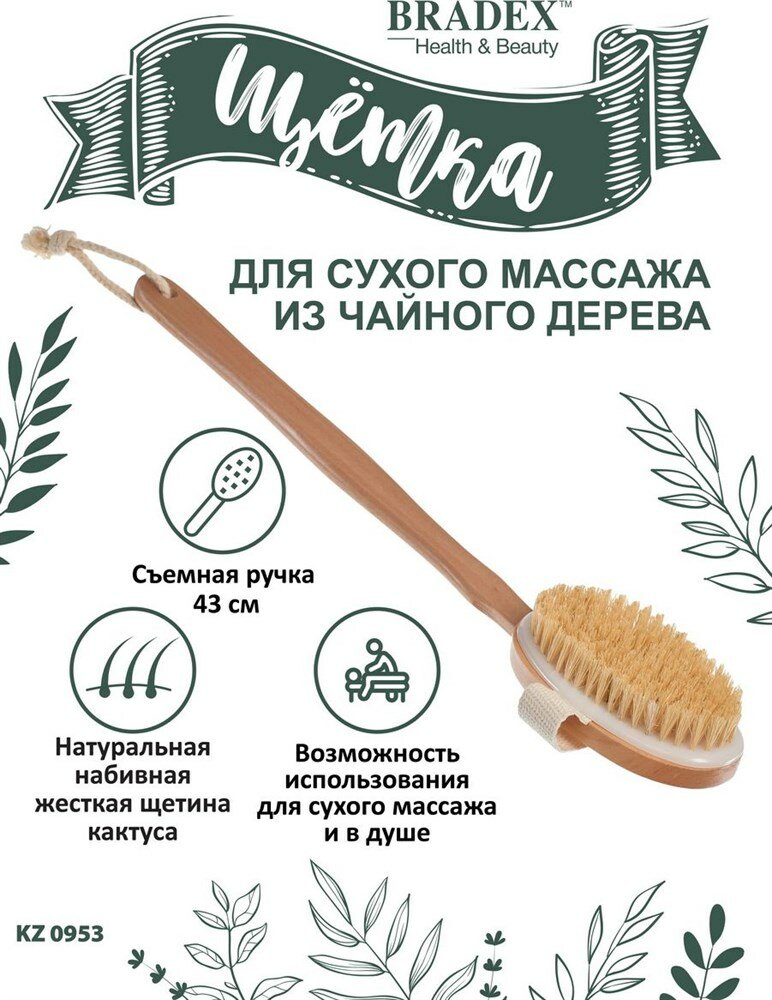 Щётка для сухого массажа из чайного дерева с щетиной кактуса со съемной ручкой 43 см — эффективное антицеллюлитное средство в борьбе за гладкую и упругую кожу тела в домашних условиях.