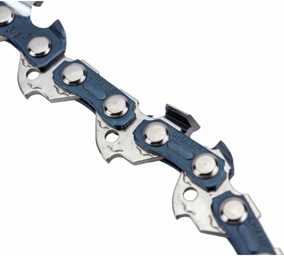 Зуб пильной цепи имеет треугольную форму с двойными режущими вершинами, что позволяет достичь исключительной производительности наряду с износостойкостью и простотой в использовании по сравнению с цепями с закругленными углами. Конструкция скошенных ограничителей глубины пропила снижает вибрацию ручек на 25% и более. Специальные пазы (канавки) на хвостовиках соединительных (ведущих) звеньев обеспечивают дополнительную смазку шарниров цепи.